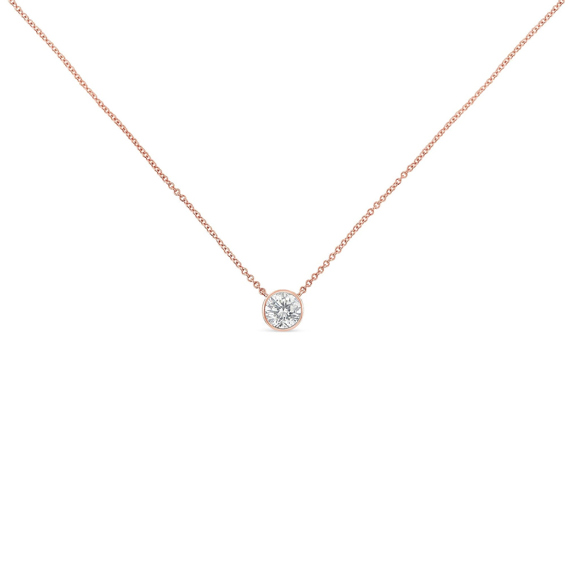 10K Rose Gold 1/2 Carat Round Brilliant-Cut Diamond Modern Bezel-Set Solitaire 16"-18" Pendant Necklace (H-I Color, SI2-I1 Clarity)