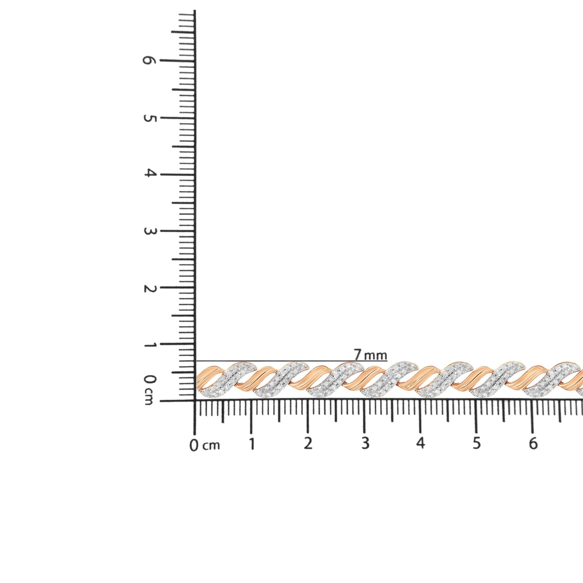 Add a touch of glamour to your outfit with this 10k rose gold plated sterling silver bracelet. 1/4ct TDW of round cut diamonds glitter in this design. Polished rose gold soft waves link with larger ones inlaid with diamonds and alternate throughout the bracelet. a box with clasp secures this stunning piece.
