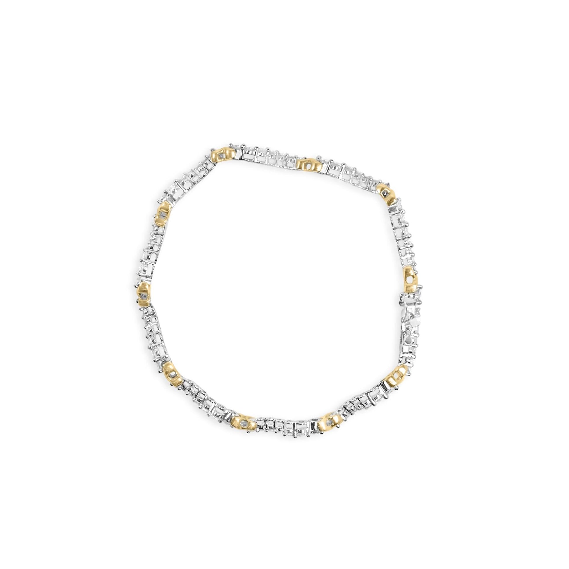10K Two-Tone 2.00 Cttw Diamond "X" and Wave Link Bracelet (H-I Color, I1-I2 Clarity) - 7" Inches