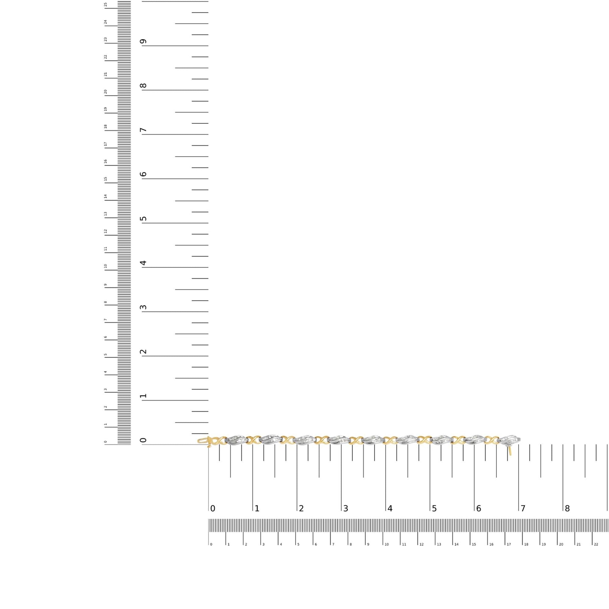 This stunning 10K two-tone gold bracelet is a must-have for any fashion-forward woman. With a total diamond weight of 1.00 cttw and 116 baguette diamonds in a chic chevron wave link design, this bracelet is sure to turn heads. The diamonds are I-J in color and have an I2-I3 clarity, making them a great value without sacrificing on sparkle. The channel setting ensures the diamonds stay securely in place, while the box clasp keeps the bracelet comfortably on your wrist. Perfect for any occasion, this baguette diamond infinity design link bracelet is a timeless piece that will be treasured for years to come.