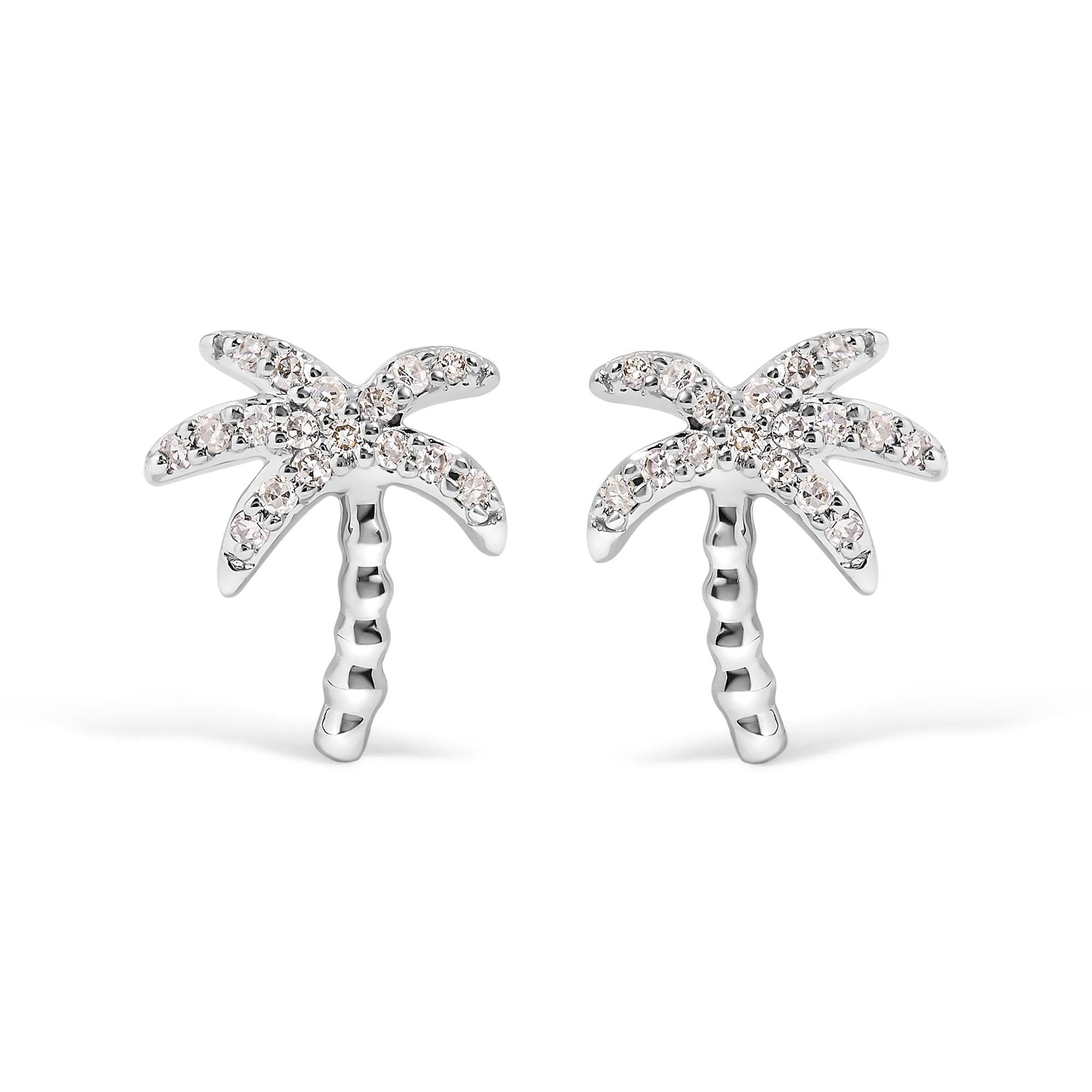10K White Gold 1/10 Cttw Diamond Encrusted Palm Tree Stud Earrings (H-I Color, I1-I2 Clarity)