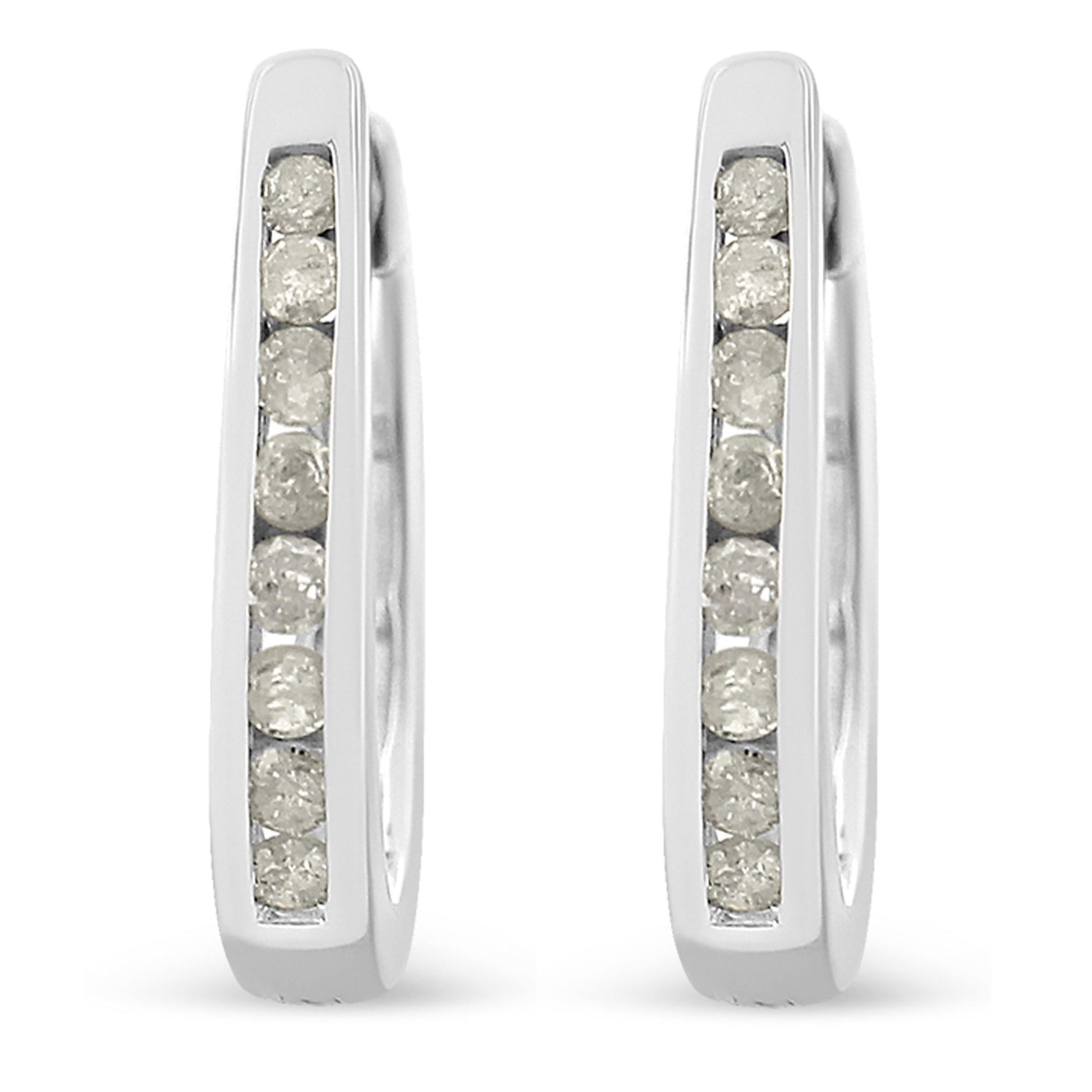 10K White Gold 1/4 Cttw Channel Set Diamond Hoop Earrings (I-J Color, I3 Clarity)
