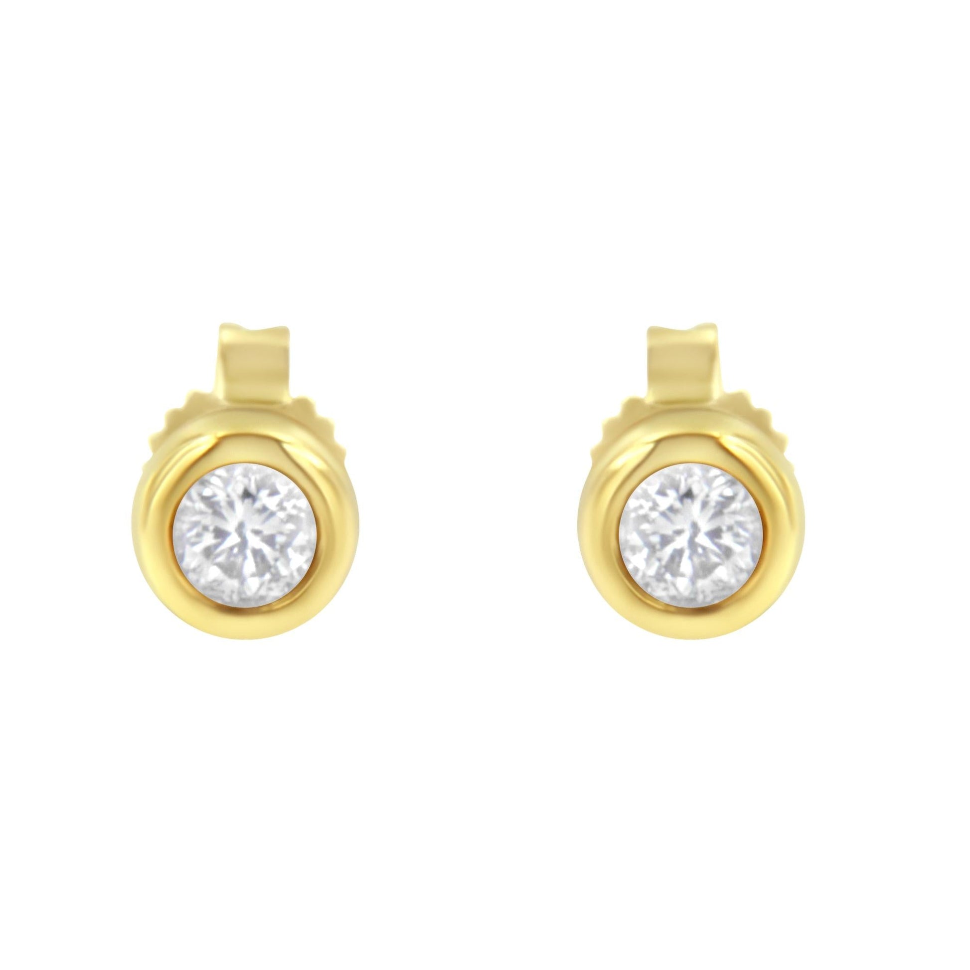 10K Gold 1/4 Cttw Round Brilliant-Cut Near Colorless Diamond Bezel-Set Stud Earrings (H-I Color, I1-I2 Clarity)