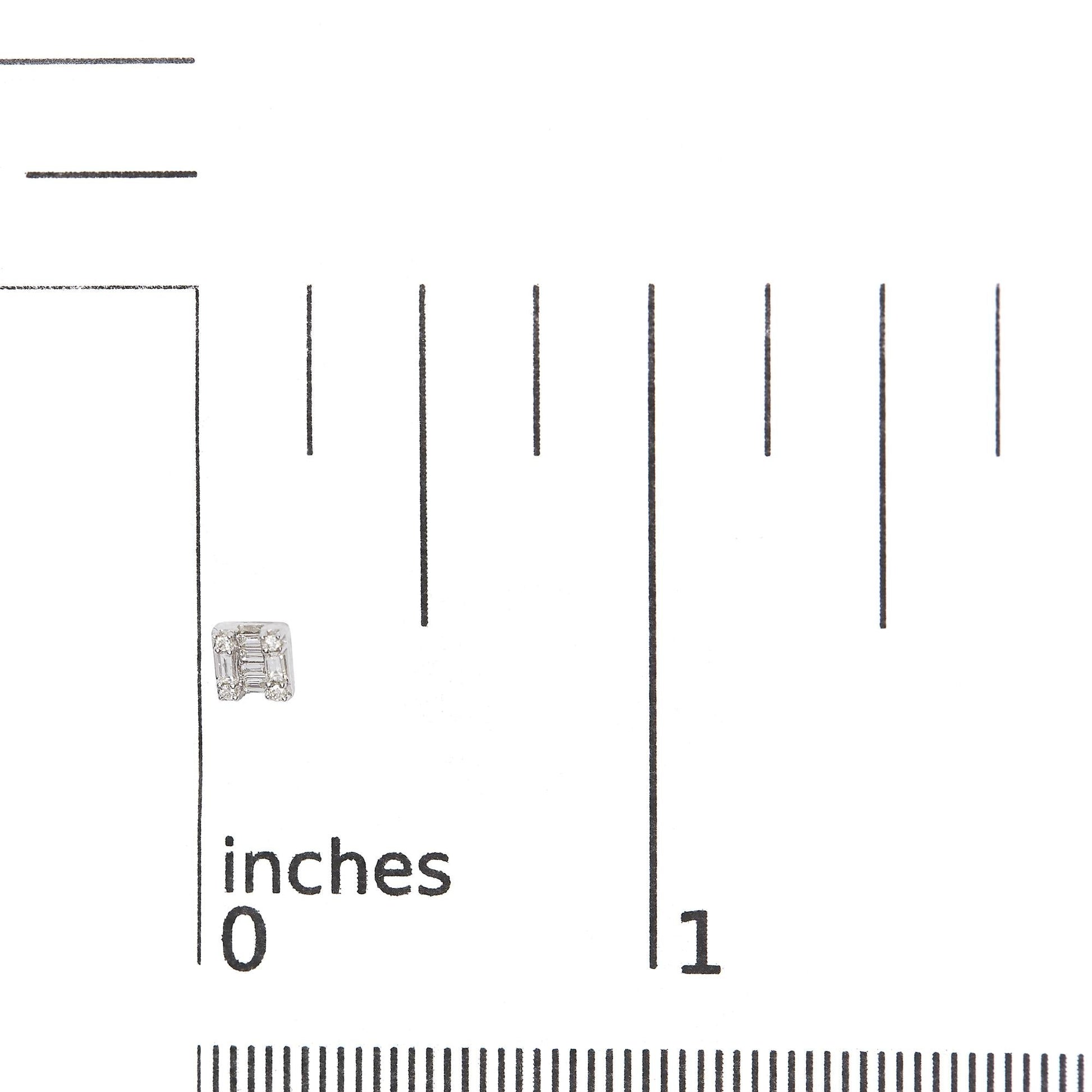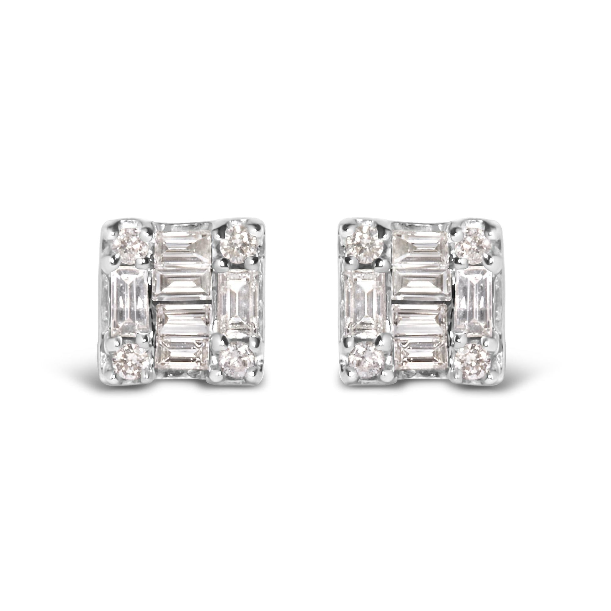 10K White Gold 1/7 Cttw Round and Baguette Diamond Mosaic Square Stud Earrings (H-I Color, I1-I2 Clarity)