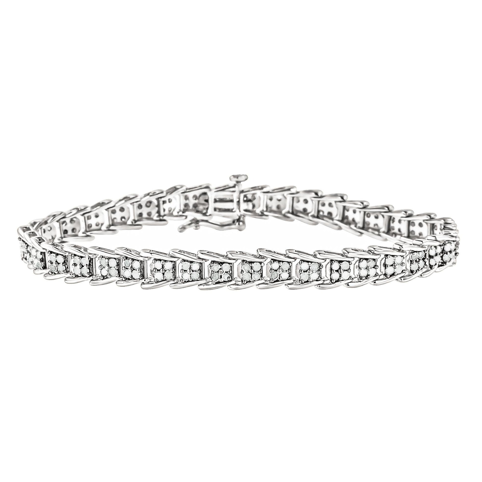 10k White Gold 2 cttw Diamond Fan-Shaped Link Tennis Bracelet (I-J Clarity, I3 Color) - Size 7.25"