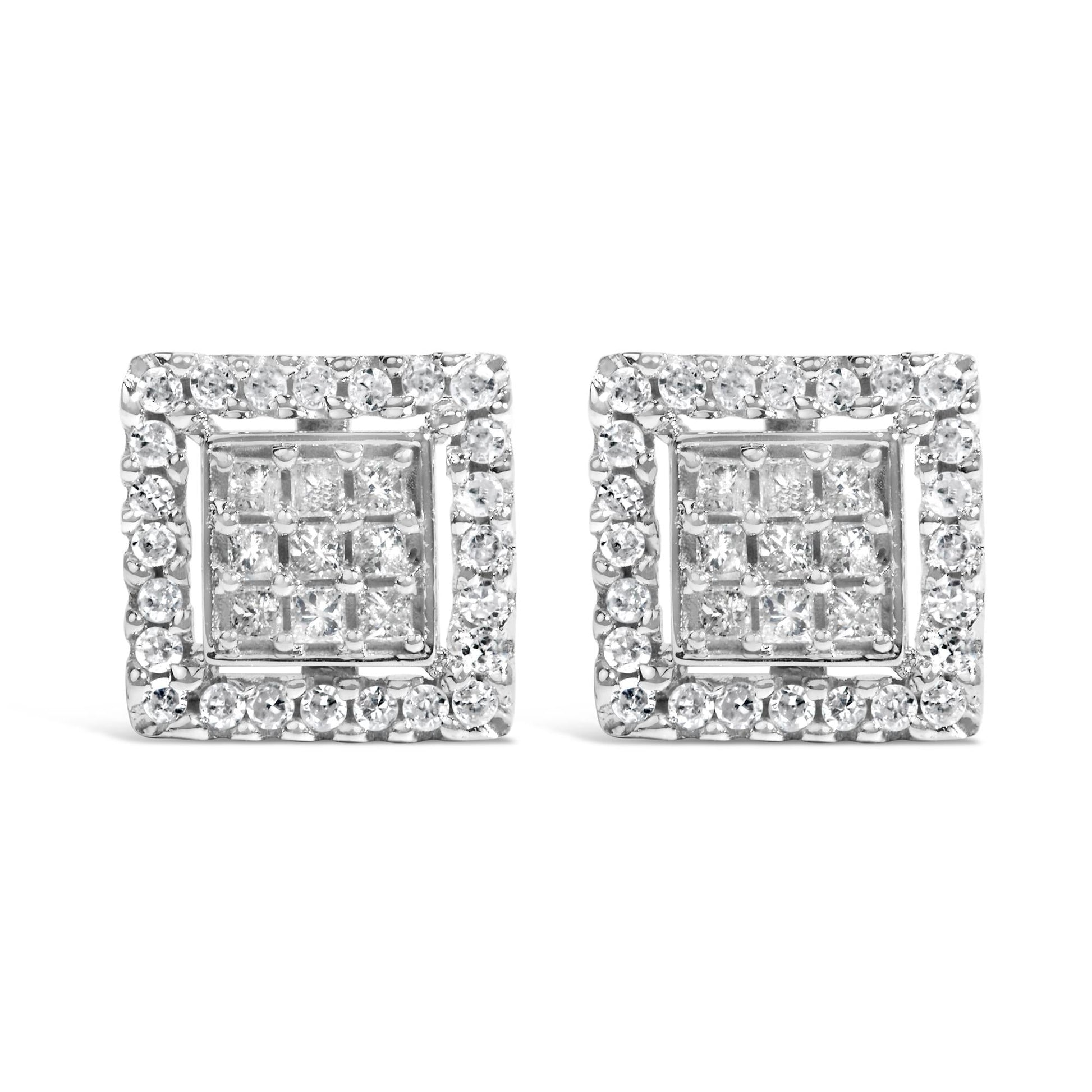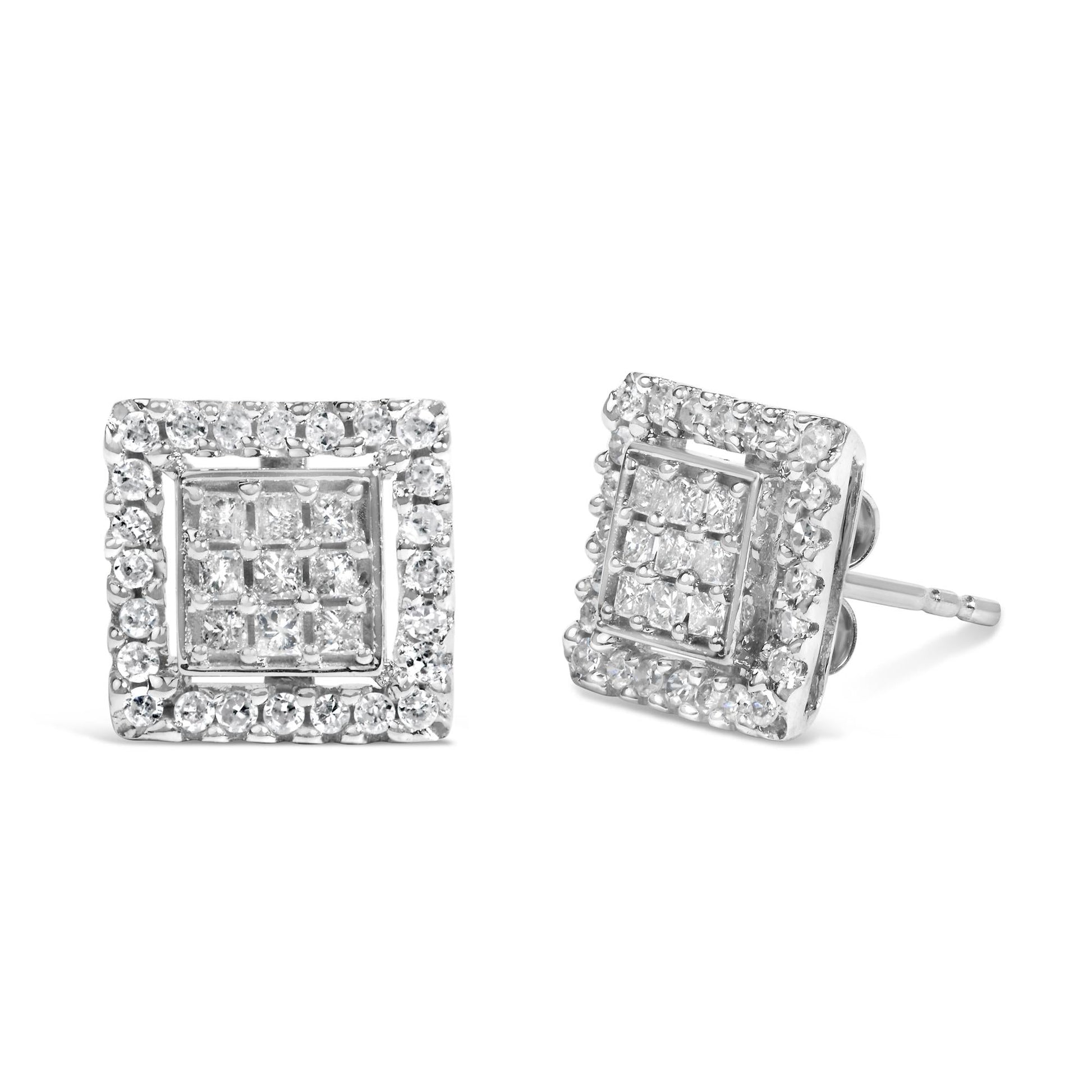 10K White Gold 3/4 Cttw Princess Diamond Composite and Halo Stud Earring (H-I Color, SI2-I1 Clarity)