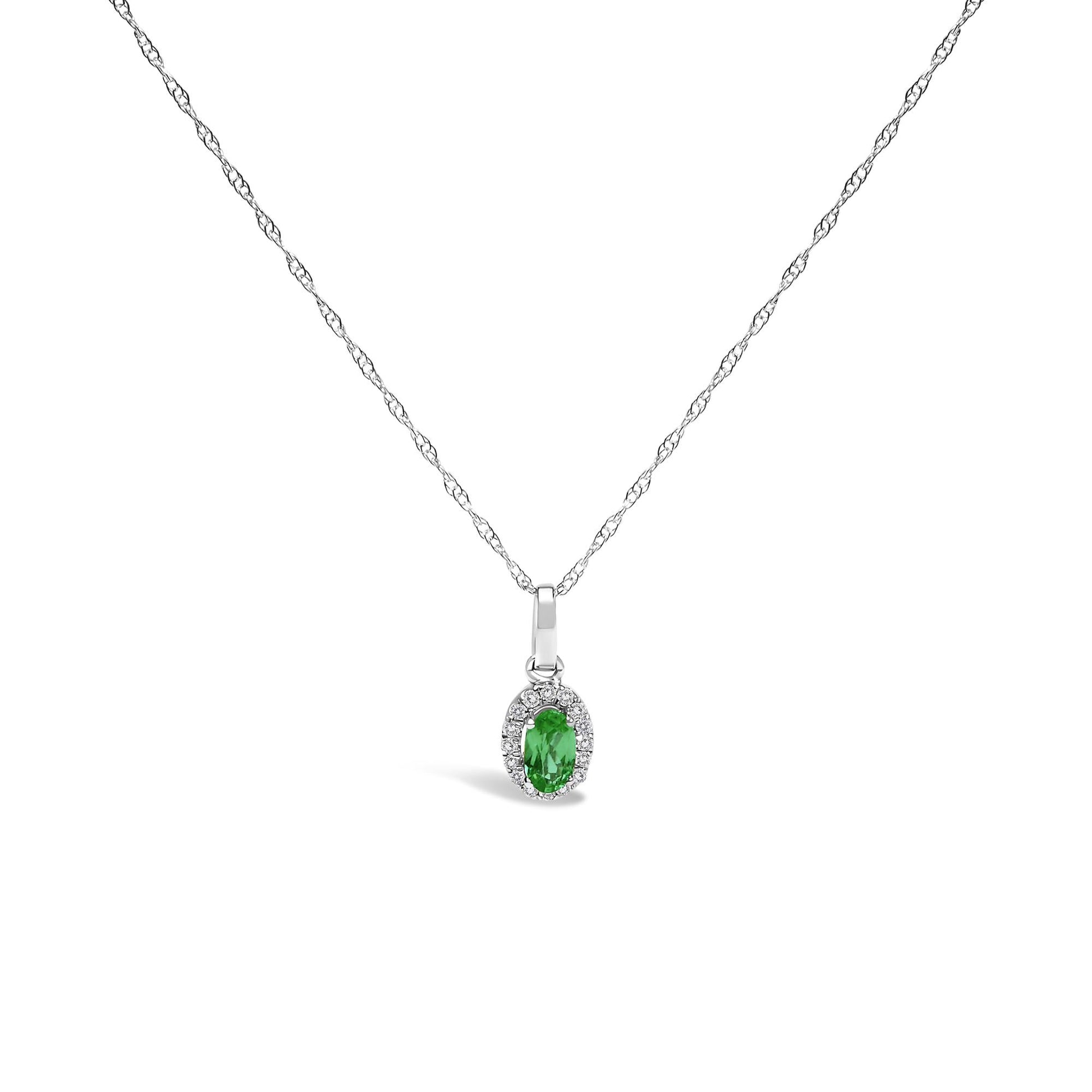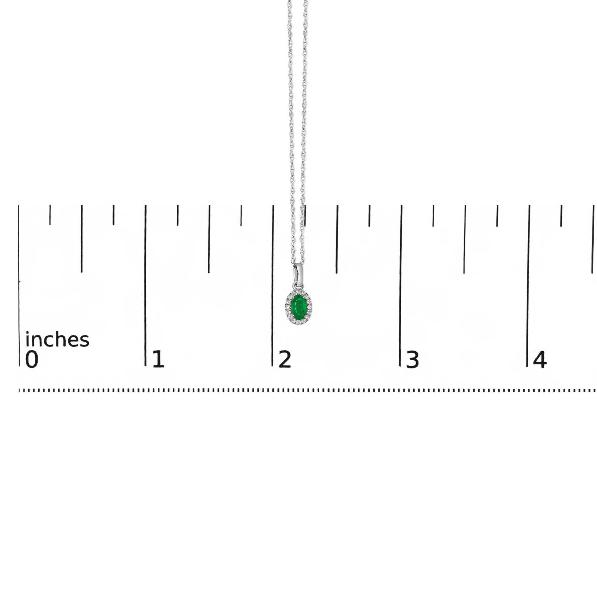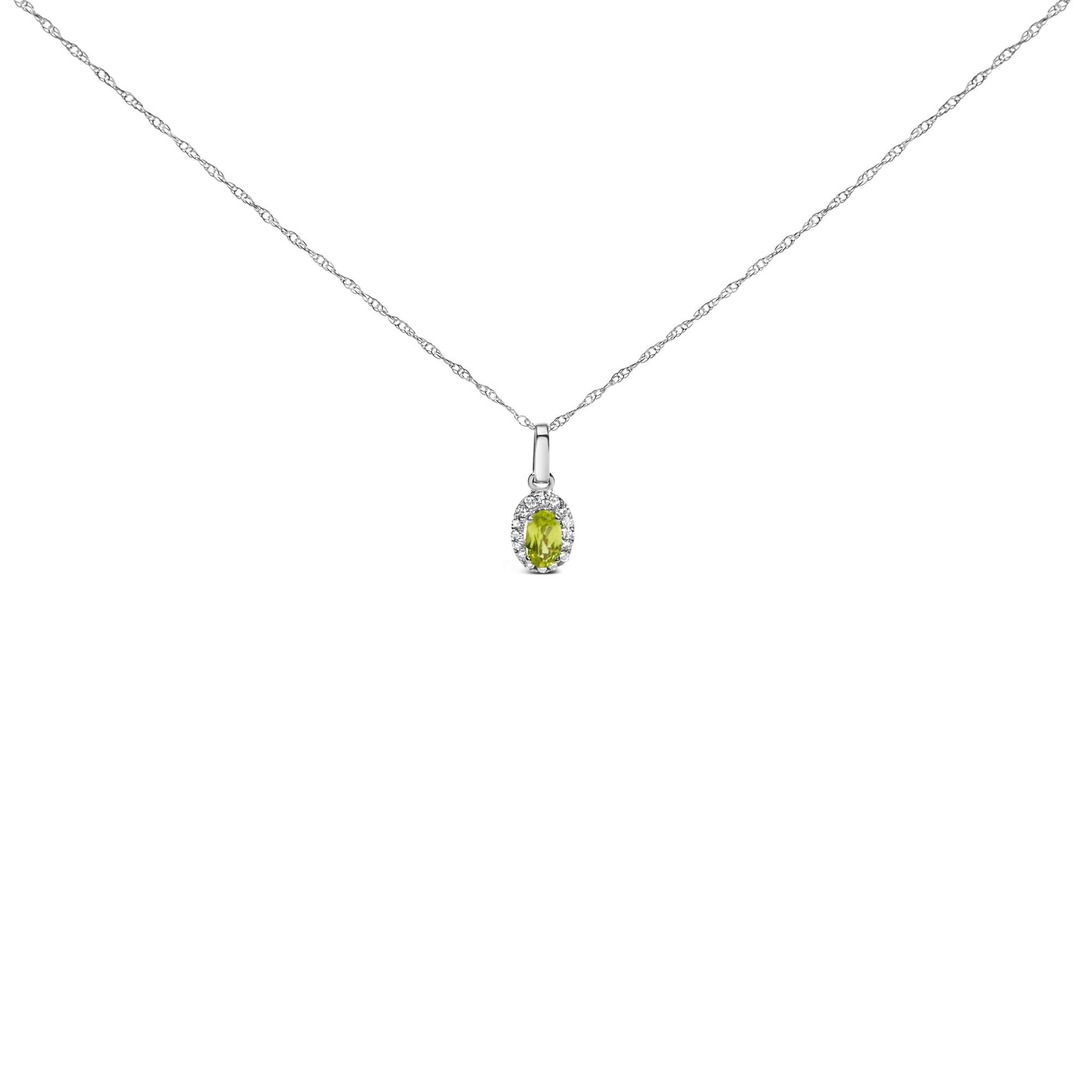 10K White Gold 5x3mm Gemstone and Diamond Accent Halo Oval Shape 18" Pendant Necklace (I-J Color, I1-I2 Clarity)