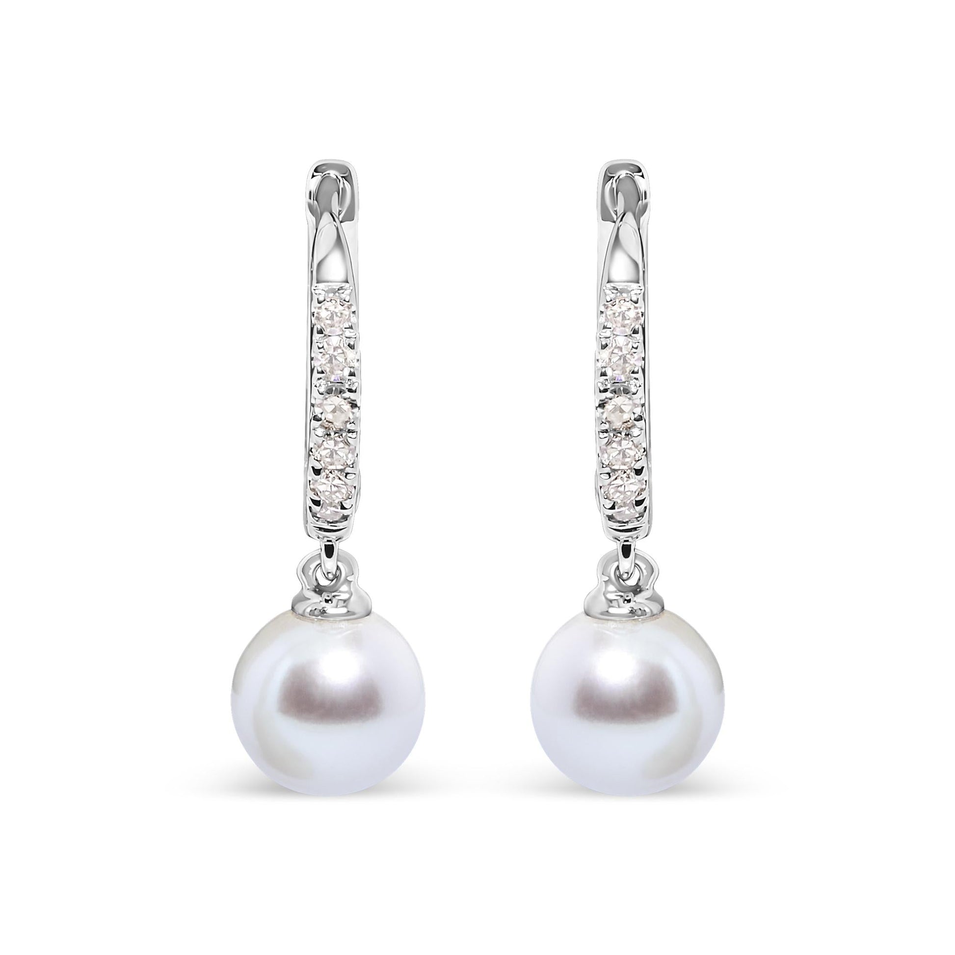 10K White Gold 6x6 MM Cultured Freshwater Pearl and Diamond Accent Drop Huggy Earring (H-I Color, I1-I2 Clarity)
