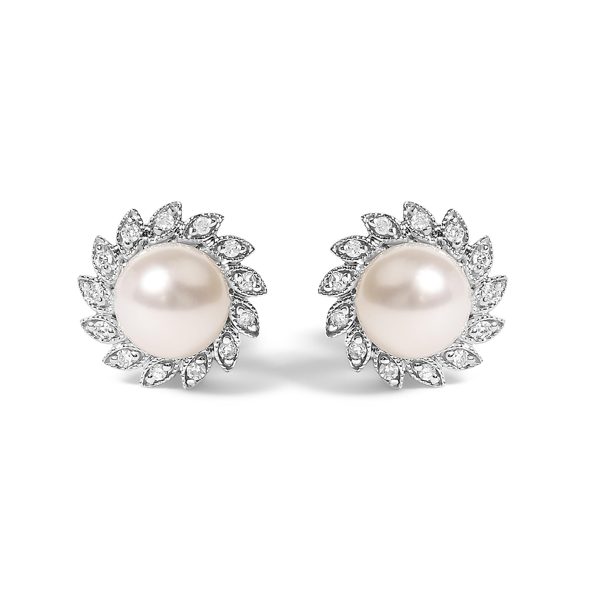 10K White Gold Heirloom-Style Pearl and Diamond Accent Halo Stud Earrings (I-J color, I1-I2 Clarity)