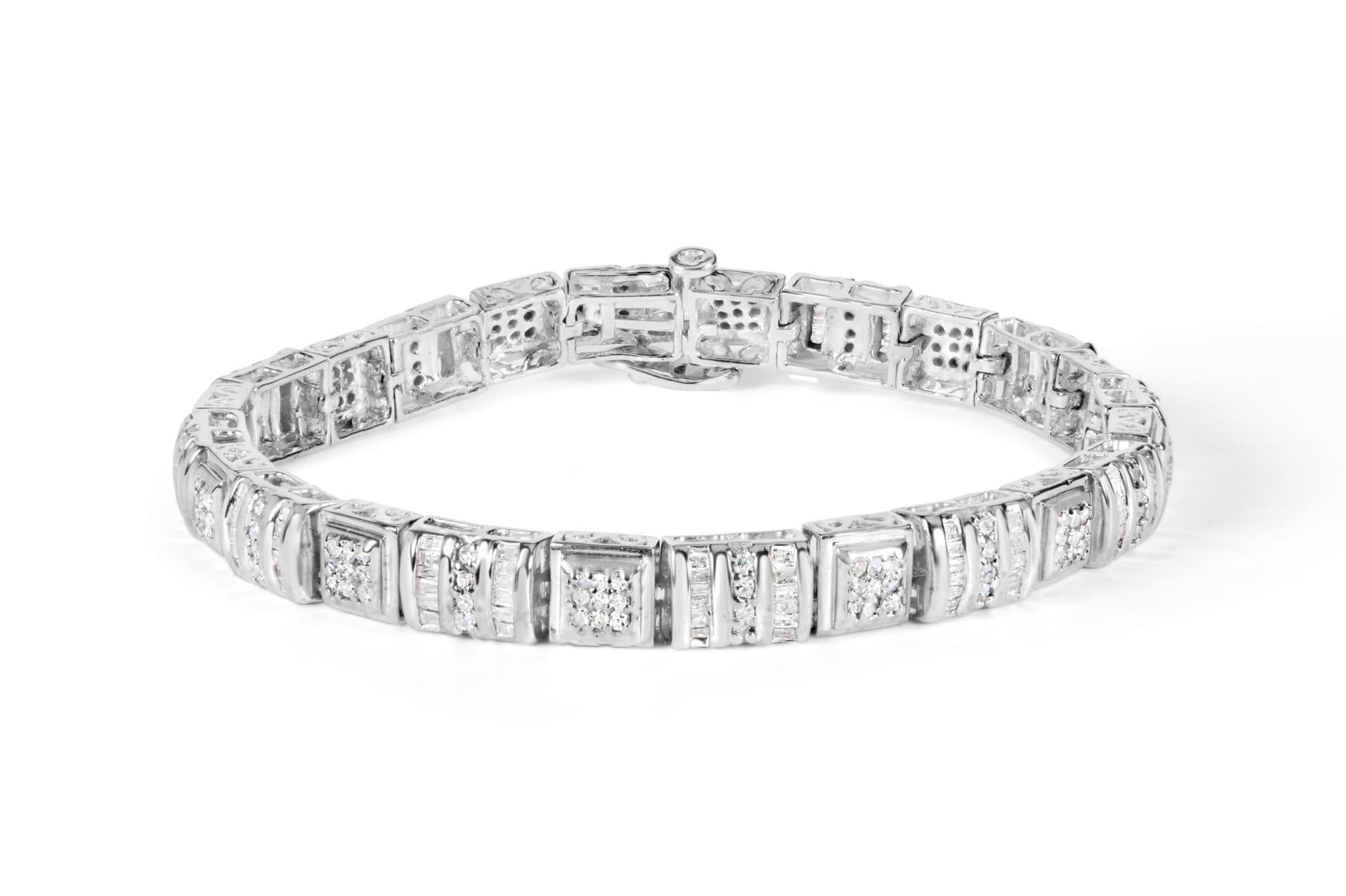 10K White Gold Round and Baguette Cut Diamond Bracelet (2.00 cttw, H-I Color, I2-I3 Clarity)