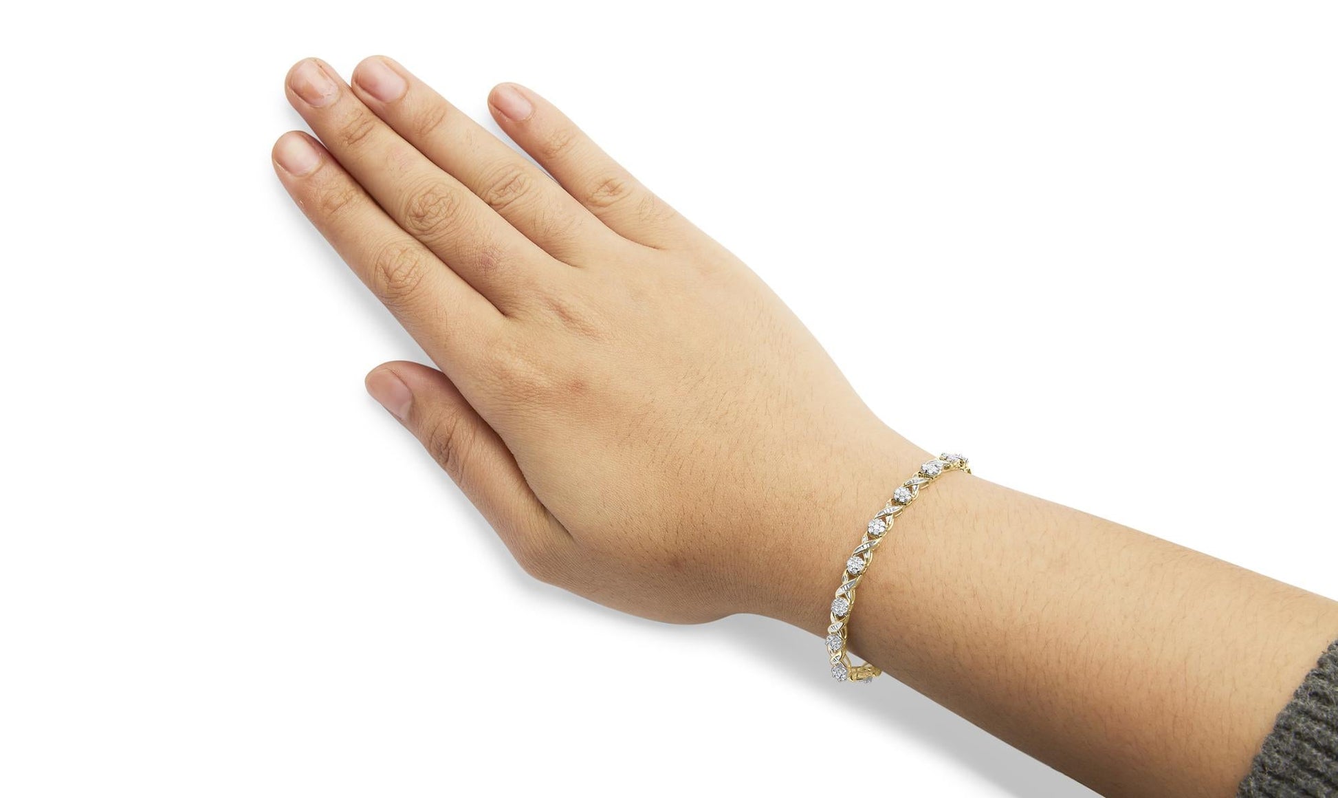10K Yellow Gold 1.00 Cttw Round Cut Diamond Cross Link 7" Bracelet (I-J Color, I2-I3 Clarity)