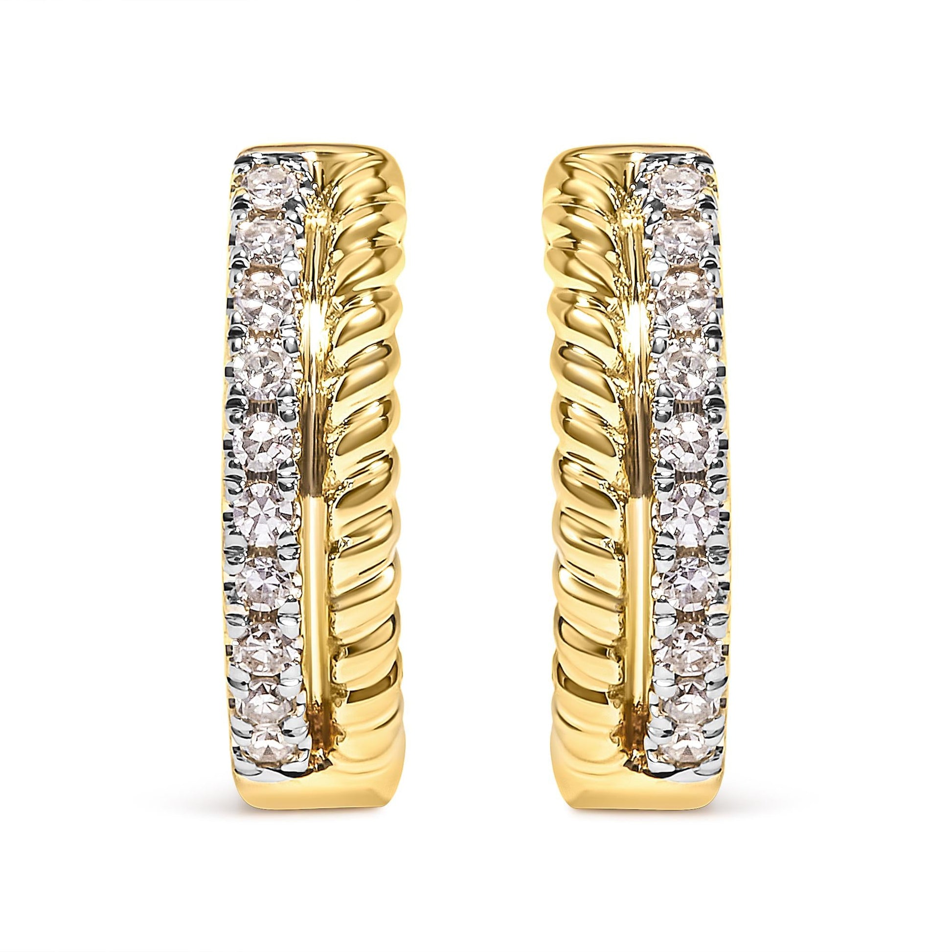10K Yellow Gold 1/10 Cttw Diamond and Rope Twist Huggy Hoop Earrings (H-I Color, I1-I2 Clarity)