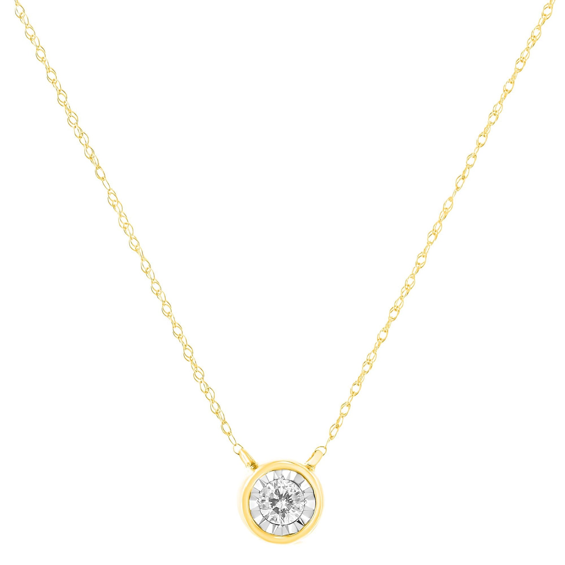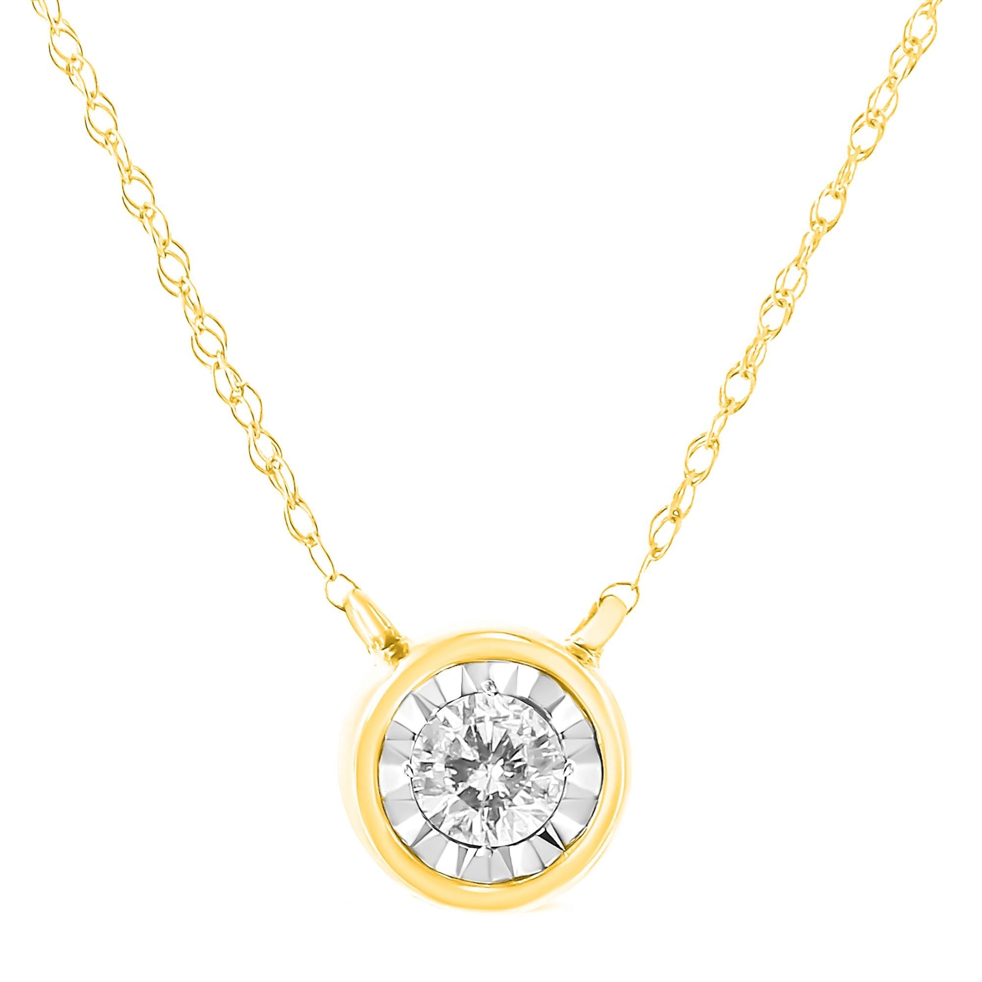 10K Gold Round Brilliant-Cut Diamond Modern Bezel-Set Solitaire Pendant Necklace (J-K Color, I2-I3 Clarity) - 16" with 2" Extender