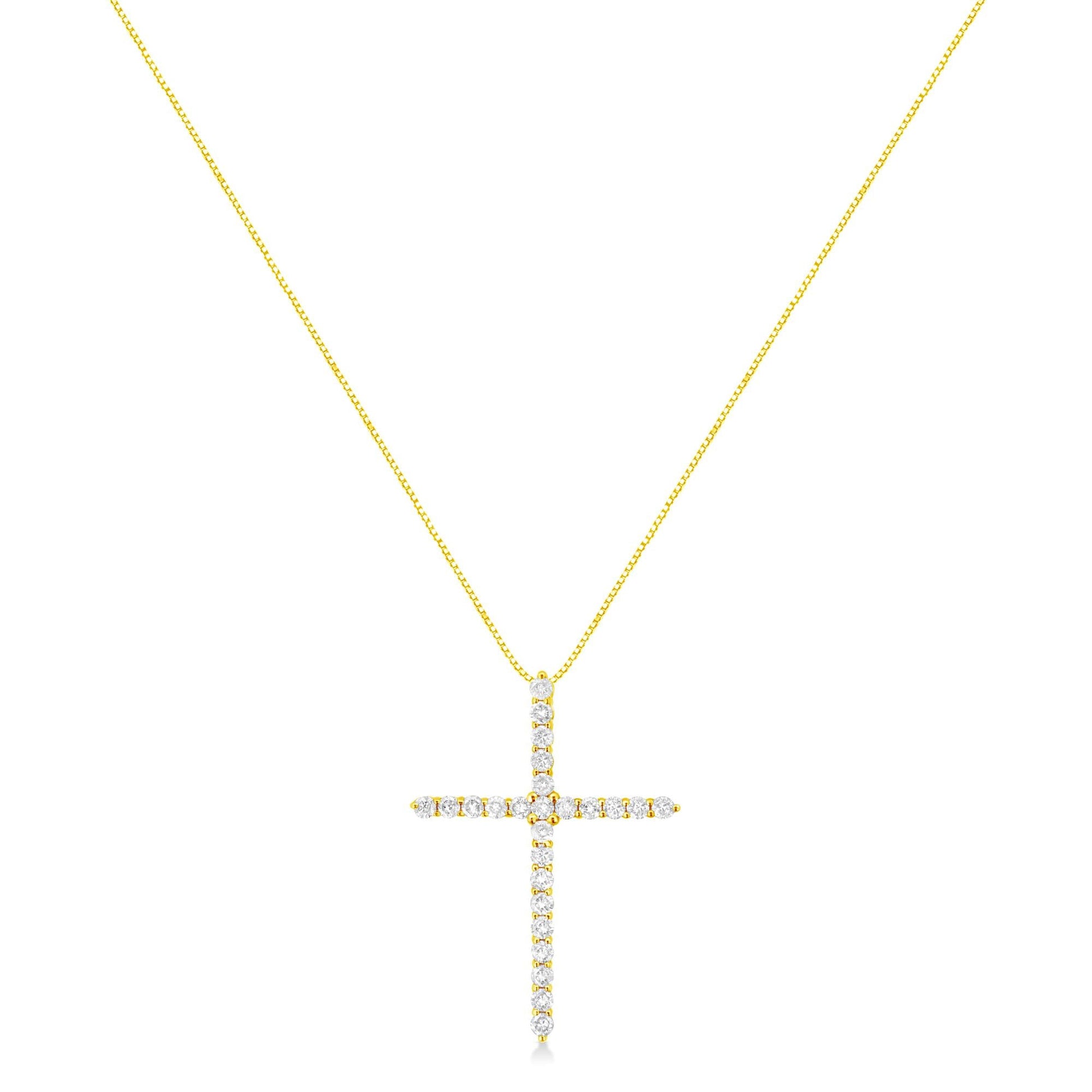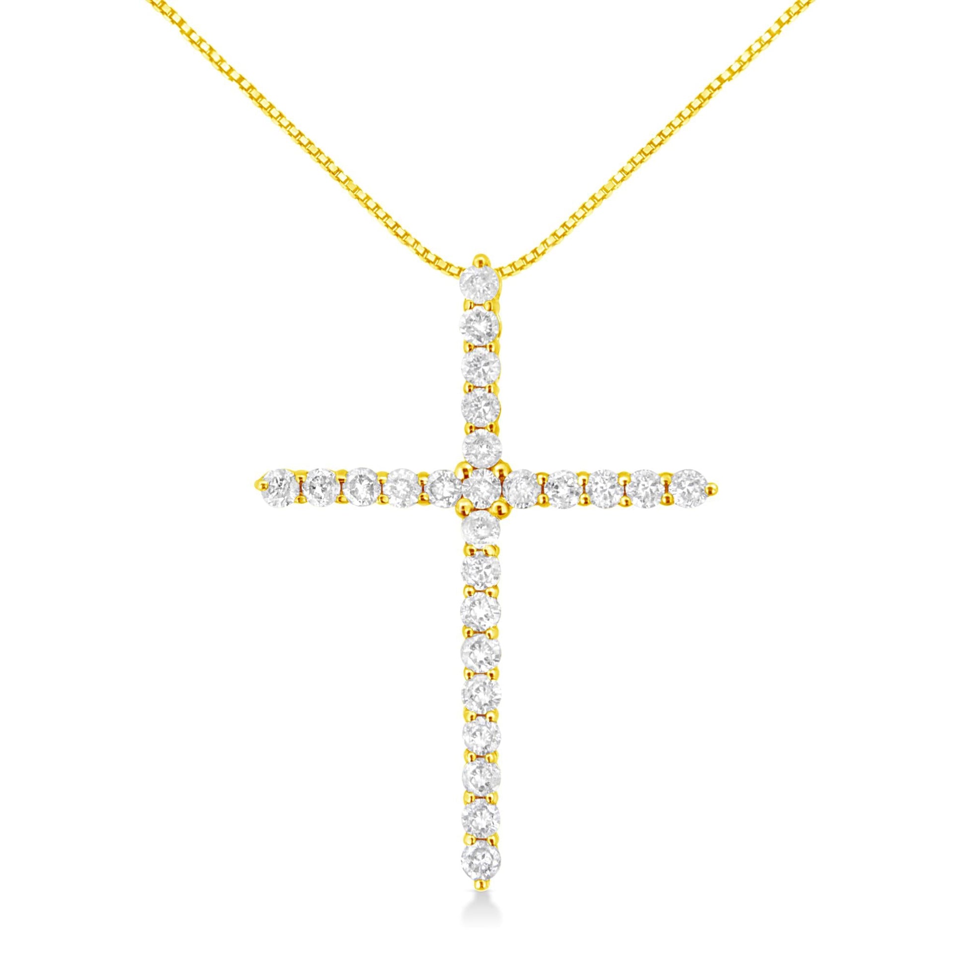 10K Yellow Gold 2.0 Cttw Round Brilliant Cut Diamond Cross Pendant Necklace with Box Chain (J-K Color, I2-I3 Clarity) - 18"