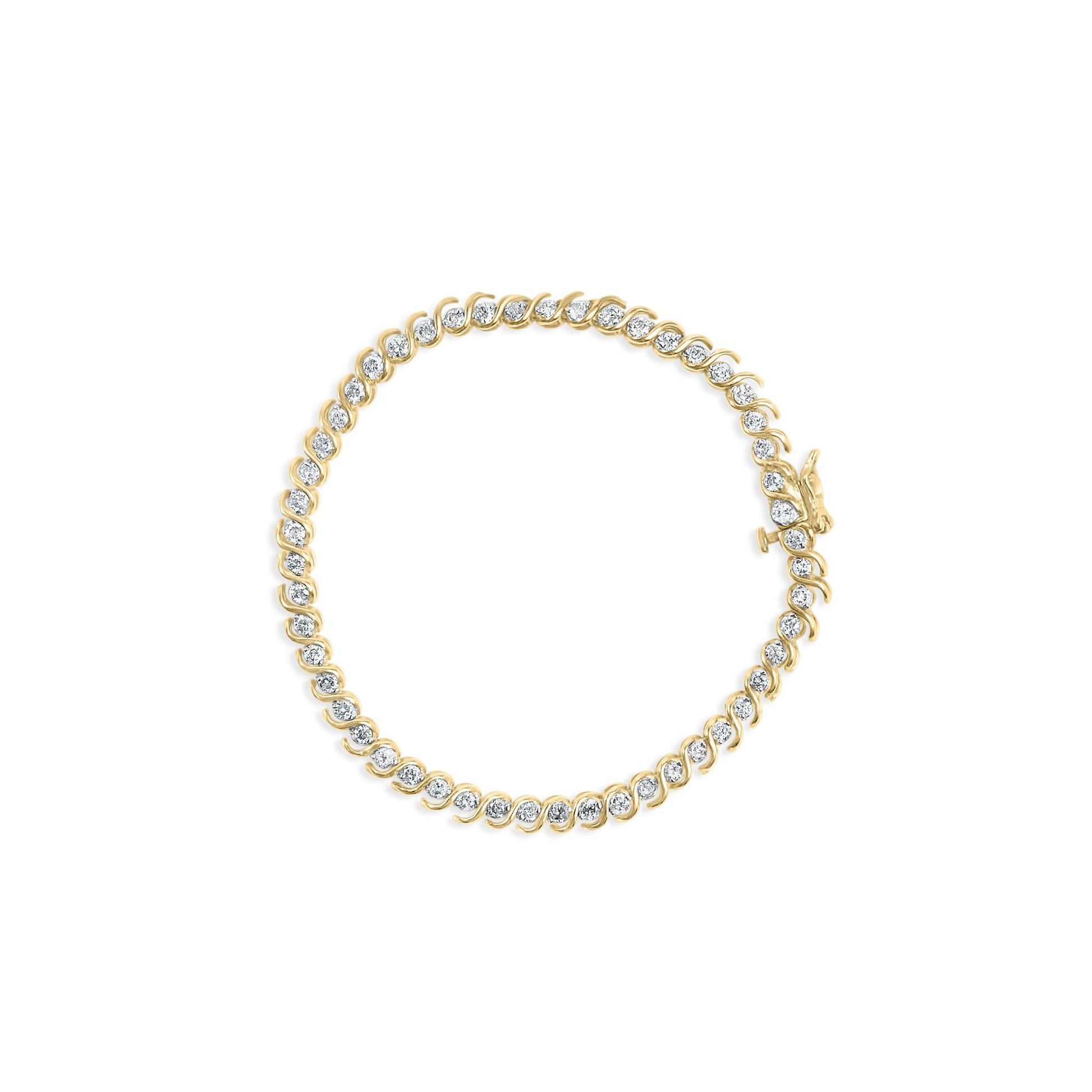 10K Yellow Gold 2.00 Cttw Round-Cut Diamond S-Link 7" Bracelet (J-K Color, I1-I2 Clarity)