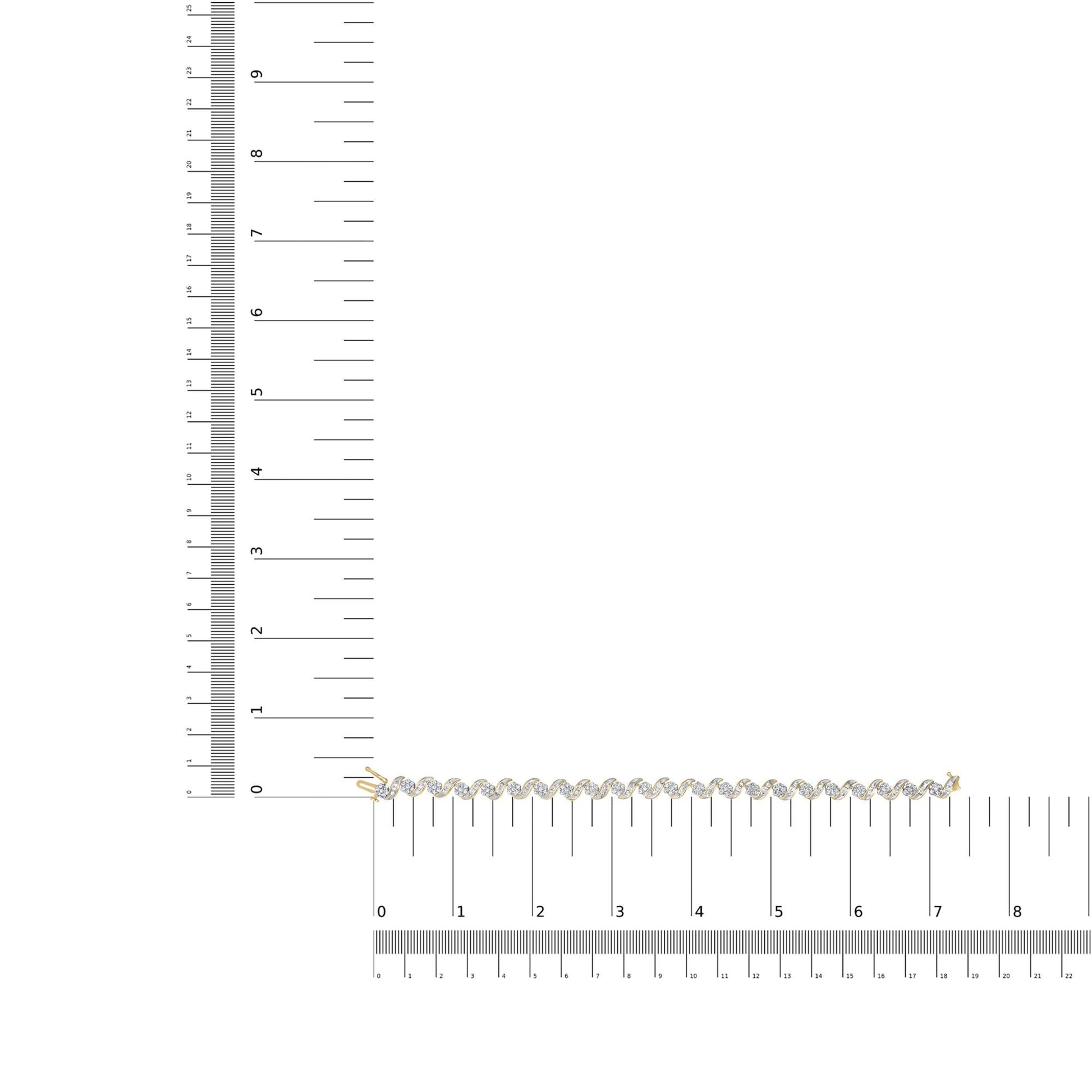 10k Yellow Gold 3.00 Cttw Round-Cut and Baguette-Cut Diamond Floral Link 7.50" Bracelet (J-K Color, I1-I2 Clarity)