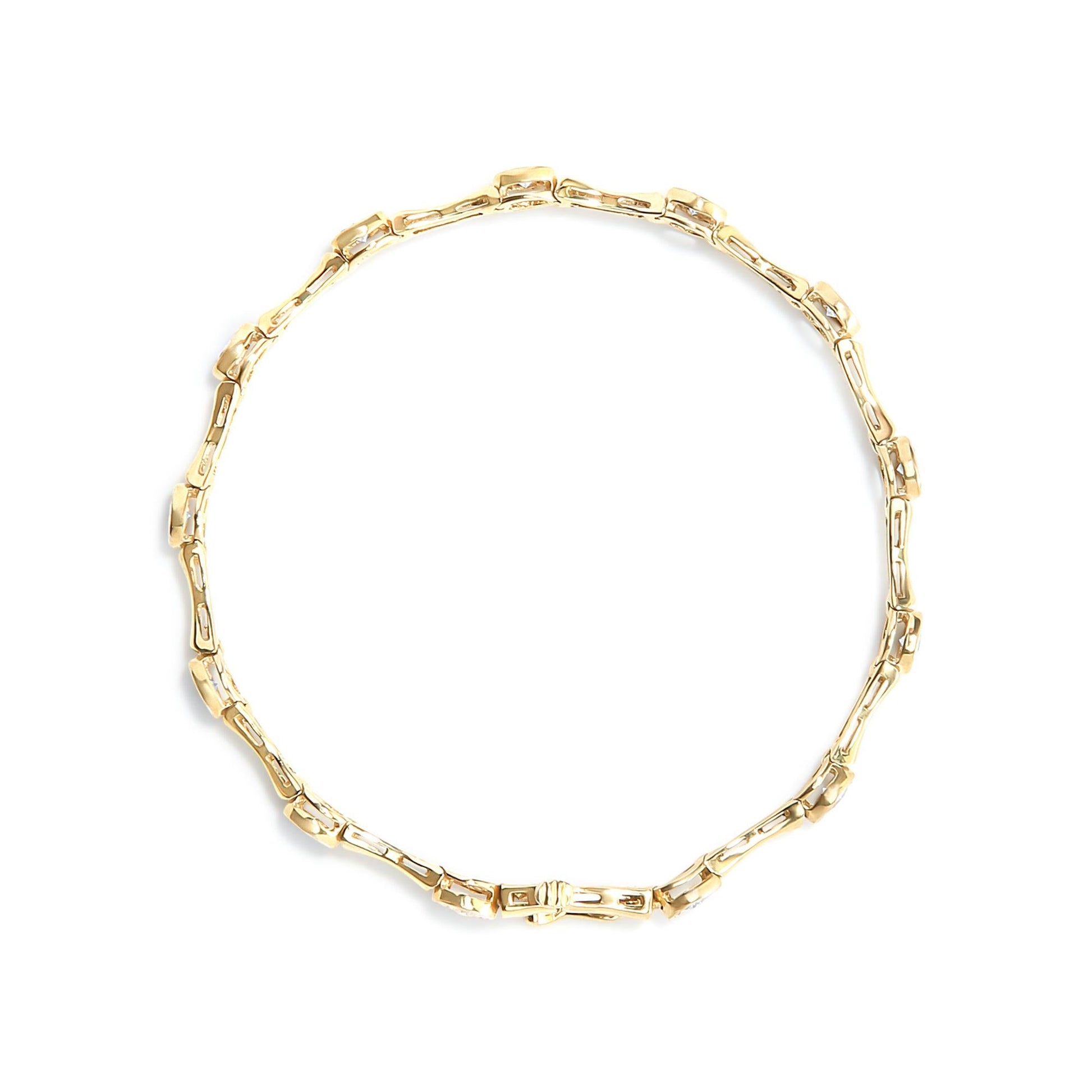 10K Yellow Gold Plated .925 Sterling Silver 1.0 Cttw Miracle Set Diamond Bezel Style Station Link Bracelet (H-I Color, I3 Clarity) - Size 7"