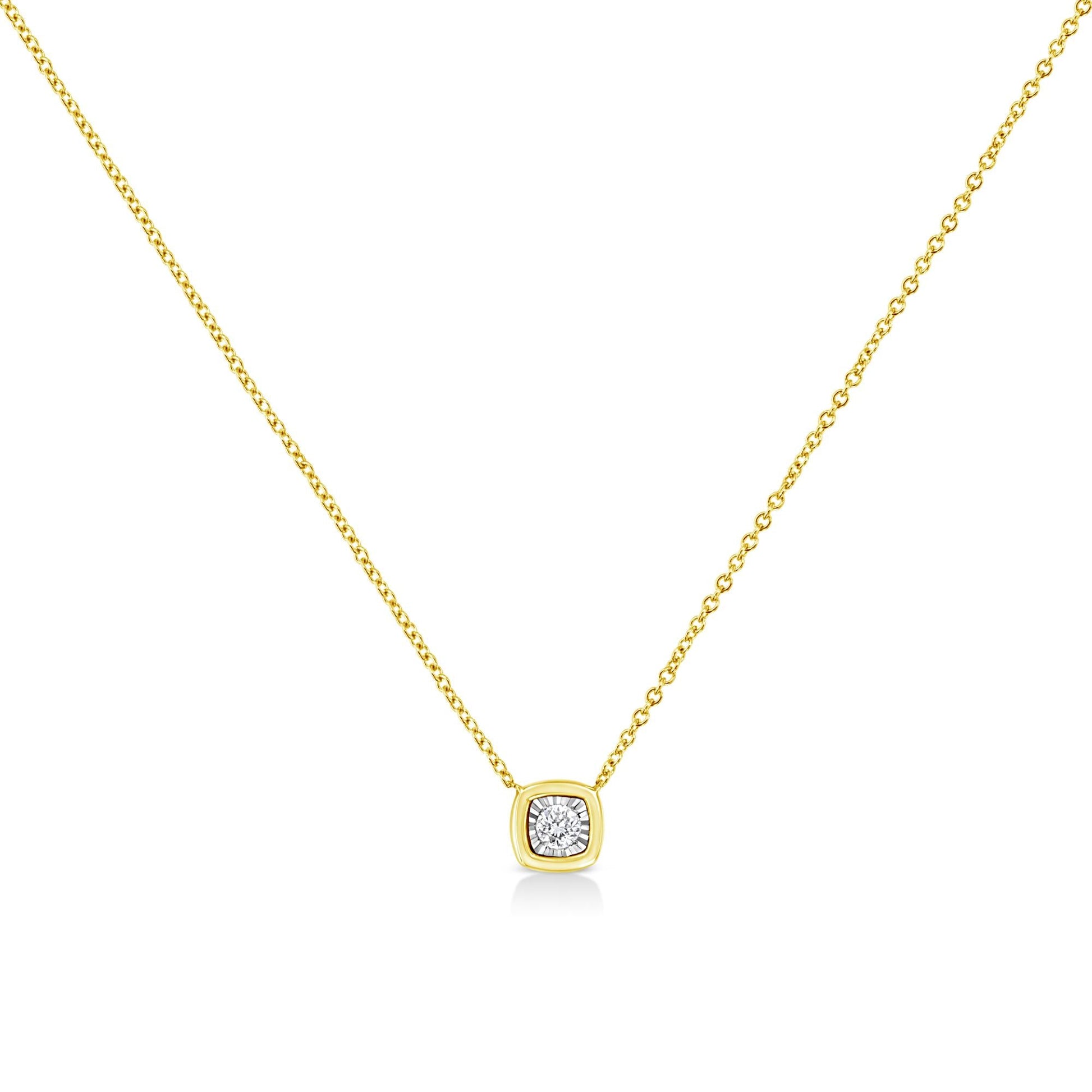 10K Yellow Gold Plated .925 Sterling Silver 1/10 Cttw Miracle Set Round Diamond 18" Pendant Necklace - Choice of Shapes