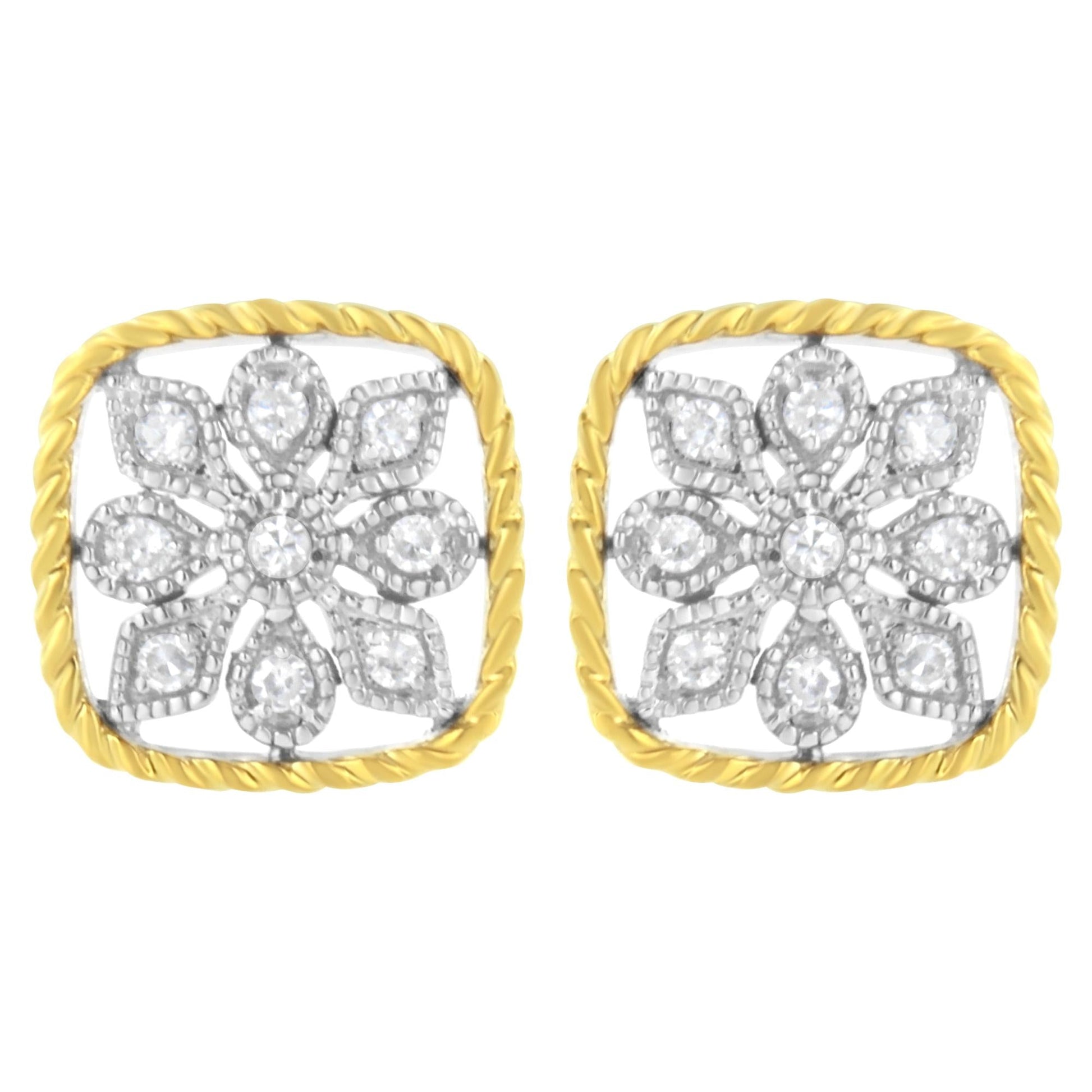10K Yellow Gold Plated .925 Sterling Silver 1/4 cttw Diamond "Flower in a Box" Stud Earrings (I-J Color, I2-I3 Clarity)