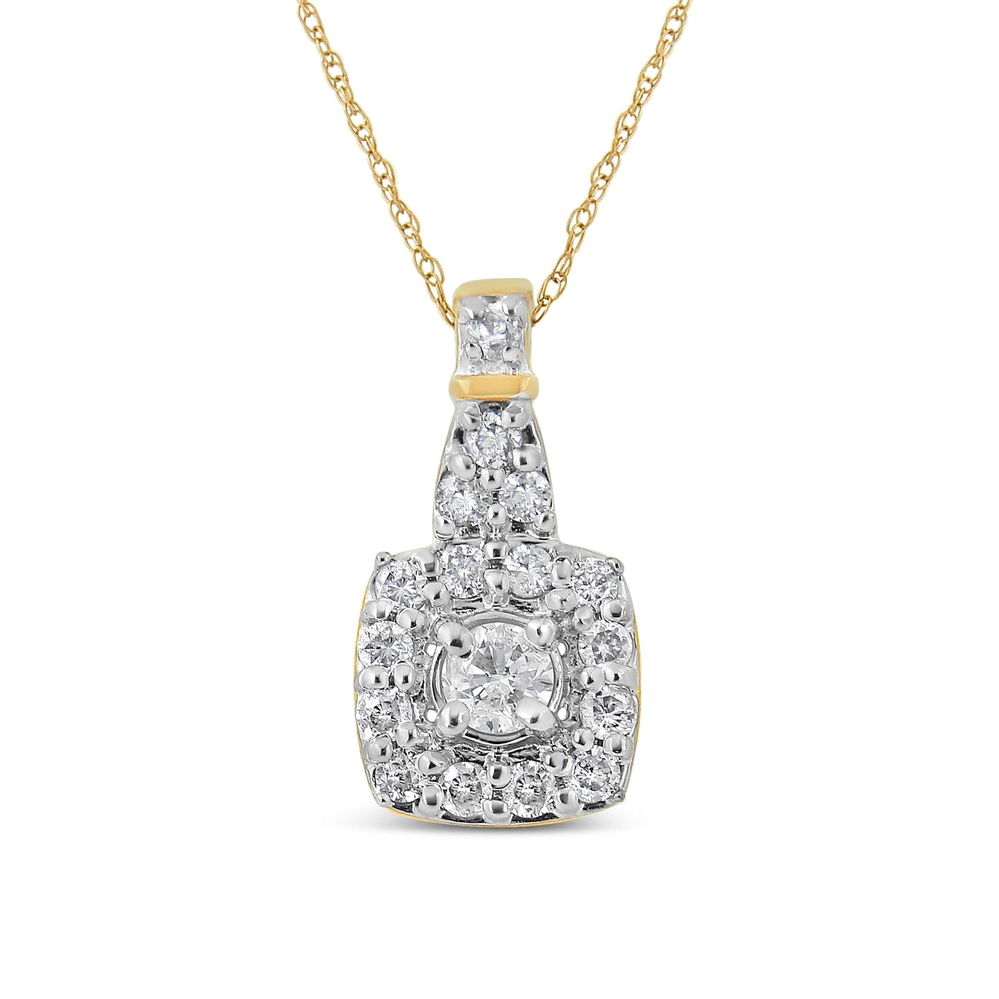 10K Yellow Gold Plated .925 Sterling Silver 1/4 Cttw Diamond Square Pendant Necklace (J-K Color, I1-I2 Clarity) - 18"