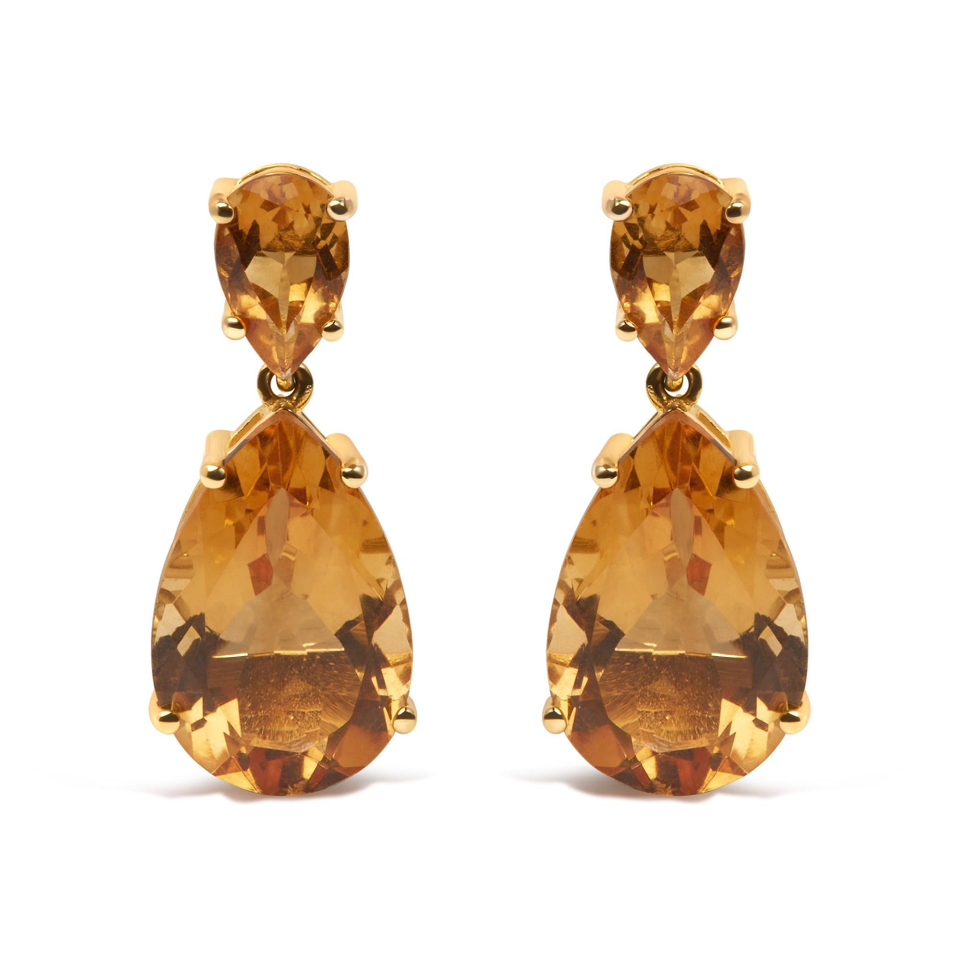10K Yellow Gold Plated .925 Sterling Silver 12 1/3 Cttw Pear Shaped Orange Citrine Dangle Double Drop Stud Earring