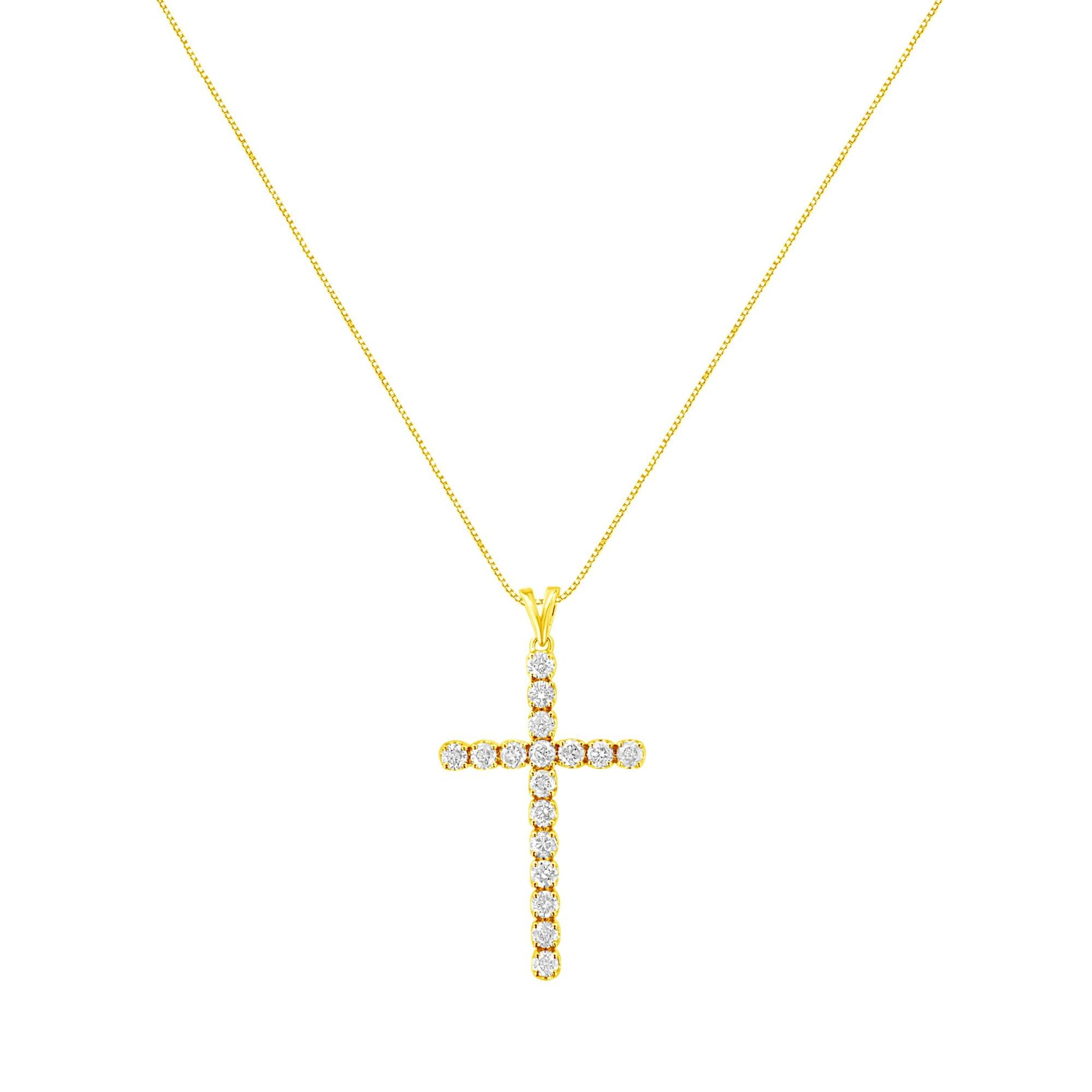 10k Yellow Gold Plated .925 Sterling Silver 2.0 cttw Classic Prong Set Round-Cut Diamond Cross 18" Pendant Necklace (J-K Color, I1-I2 Clarity)
