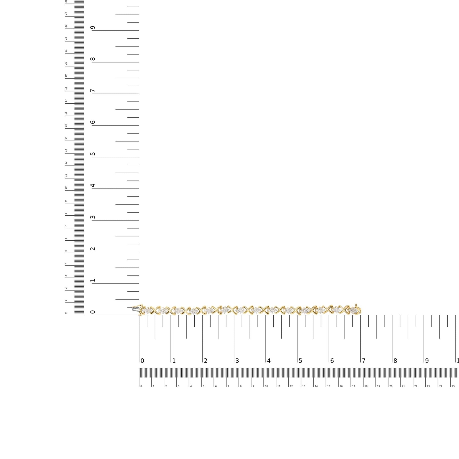 Introducing the perfect finishing touch for any sophisticated outfit - a stunning diamond bracelet. Crafted from lustrous 10K yellow gold plated .925 sterling silver, this bracelet boasts a dazzling array of round-cut diamonds totaling a breathtaking 2 carats. The diamonds are rated H-I in color and I2-I3 in clarity, ensuring a sparkling and eye-catching display. Featuring alternating links of diamond clusters and elegantly designed "x shaped links," this bracelet is sure to become a treasured addition to any jewelry collection. The bracelet measures 7 inches in length, fitting comfortably on wrists up to that size. The secure box with latch clasp ensures that this bracelet stays put, no matter where your day takes you. Whether dressing up for a special occasion or simply adding a touch of sparkle to your everyday look, this diamond bracelet is sure to make a statement. With its high-quality materials and stunning design, it makes for a thoughtful and luxurious gift for any woman.