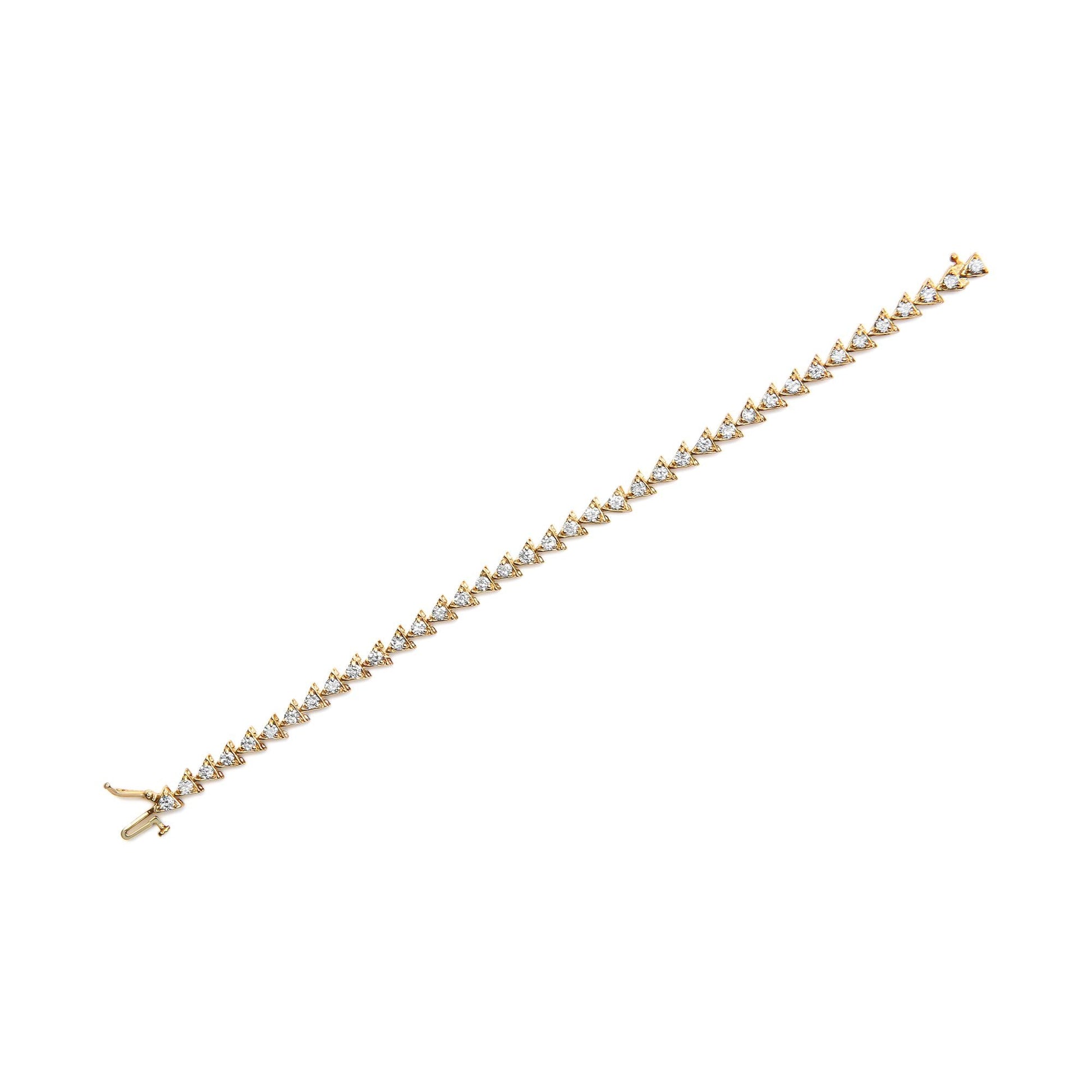 Our bracelet is the perfect way to add a touch of sparkle to your everyday wardrobe. The bracelet features 10K yellow gold plated .925 sterling silver links, each shaped like a triangle and set with a natural diamond. The 3.0 Cttw of diamonds are I-J in color and SI2-I1 in clarity, ensuring a beautiful sparkle. Not only is this bracelet beautiful, but it is also a great value for its price. The 10K yellow gold plating adds durability and longevity to the bracelet, ensuring that it will remain a staple in your jewelry collection for years to come. The bracelet measures 7.25 inches in length and has a secure clasp, making it comfortable and easy to wear. This bracelet is perfect for dressing up a casual outfit or adding a touch of glamour to a formal look. It also makes a thoughtful gift for a loved one, sure to be cherished for years to come. Shop now and add a touch of elegance to your wardrobe!
