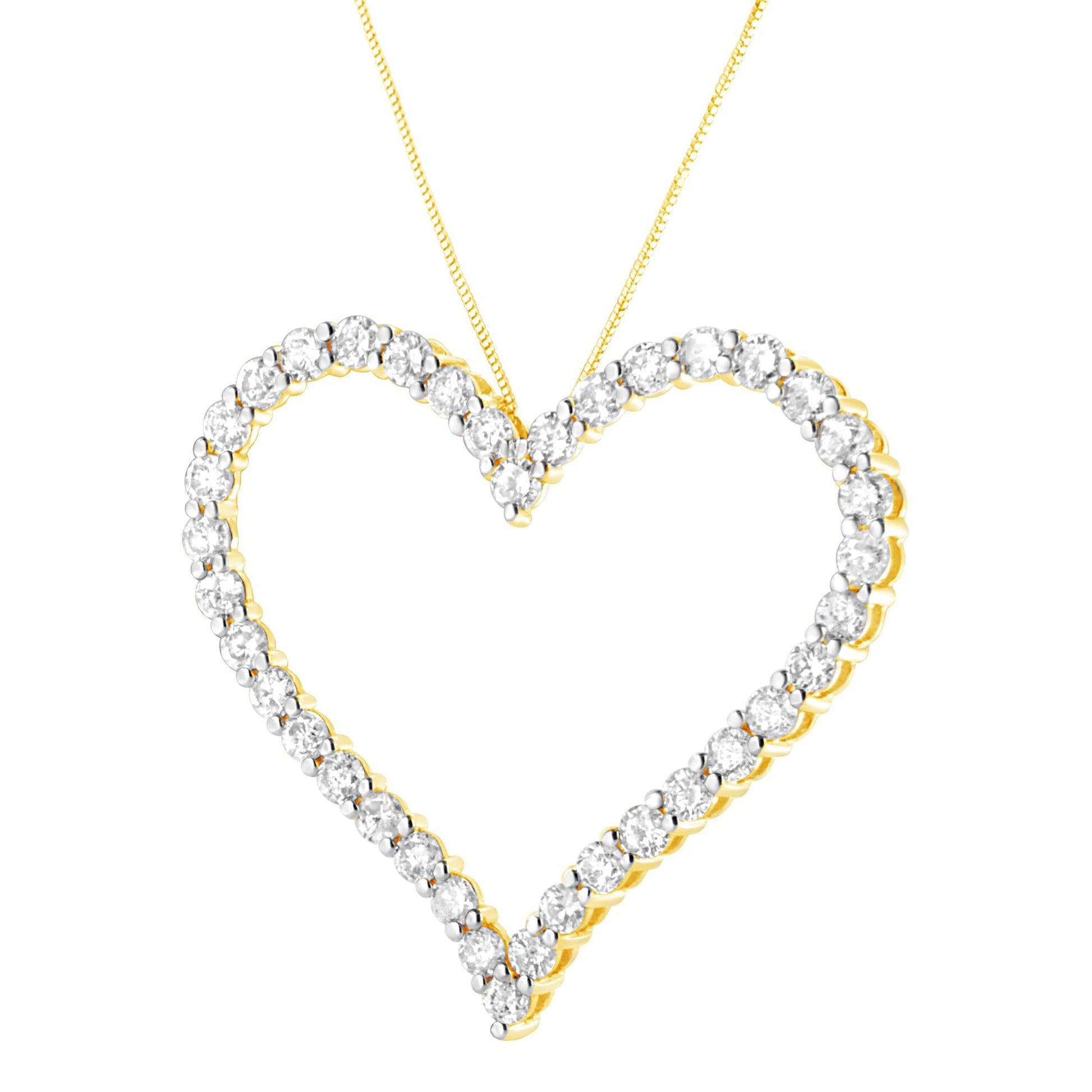 10k Yellow Gold Plated .925 Sterling Silver 3.0 cttw Round-Cut Diamond Open Heart Pendant Necklace (J-K Color, I1-I2 Clarity) - 18"