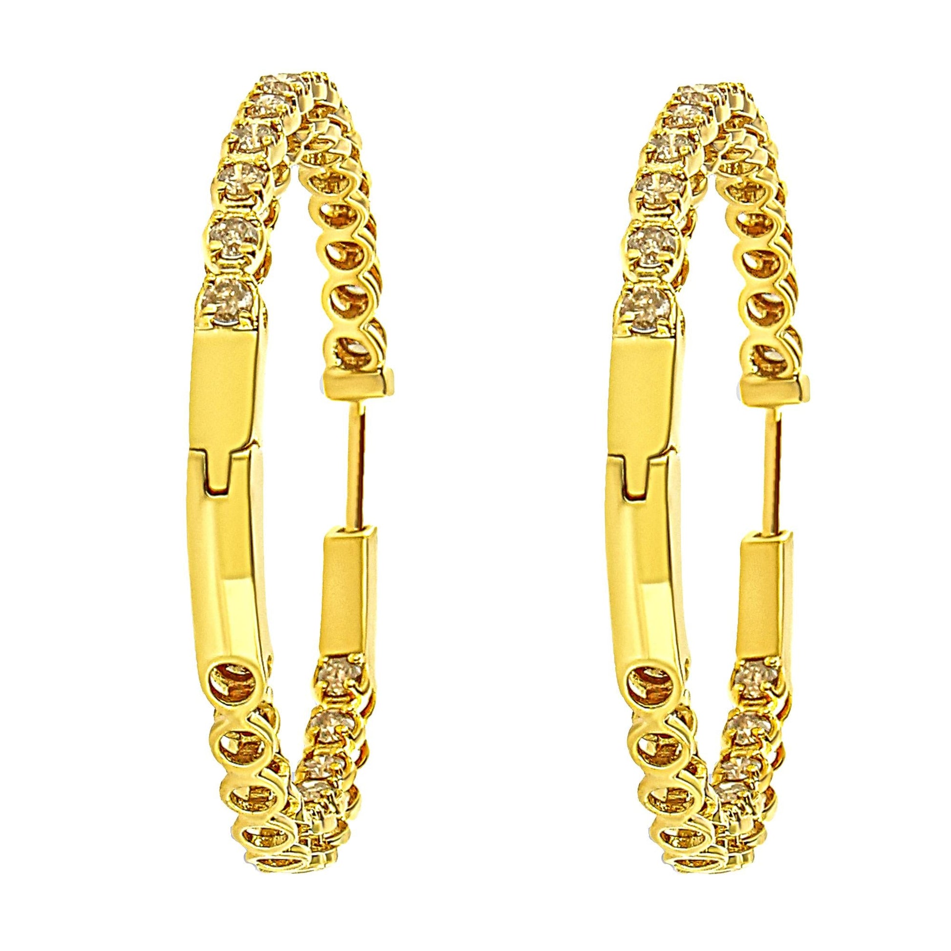 10K Yellow Gold Plated .925 Sterling Silver 3.00 Cttw Round Stone Champagne Diamond Inside-Out Hoop Earrings (Champagne Color, I1-I2 Clarity)