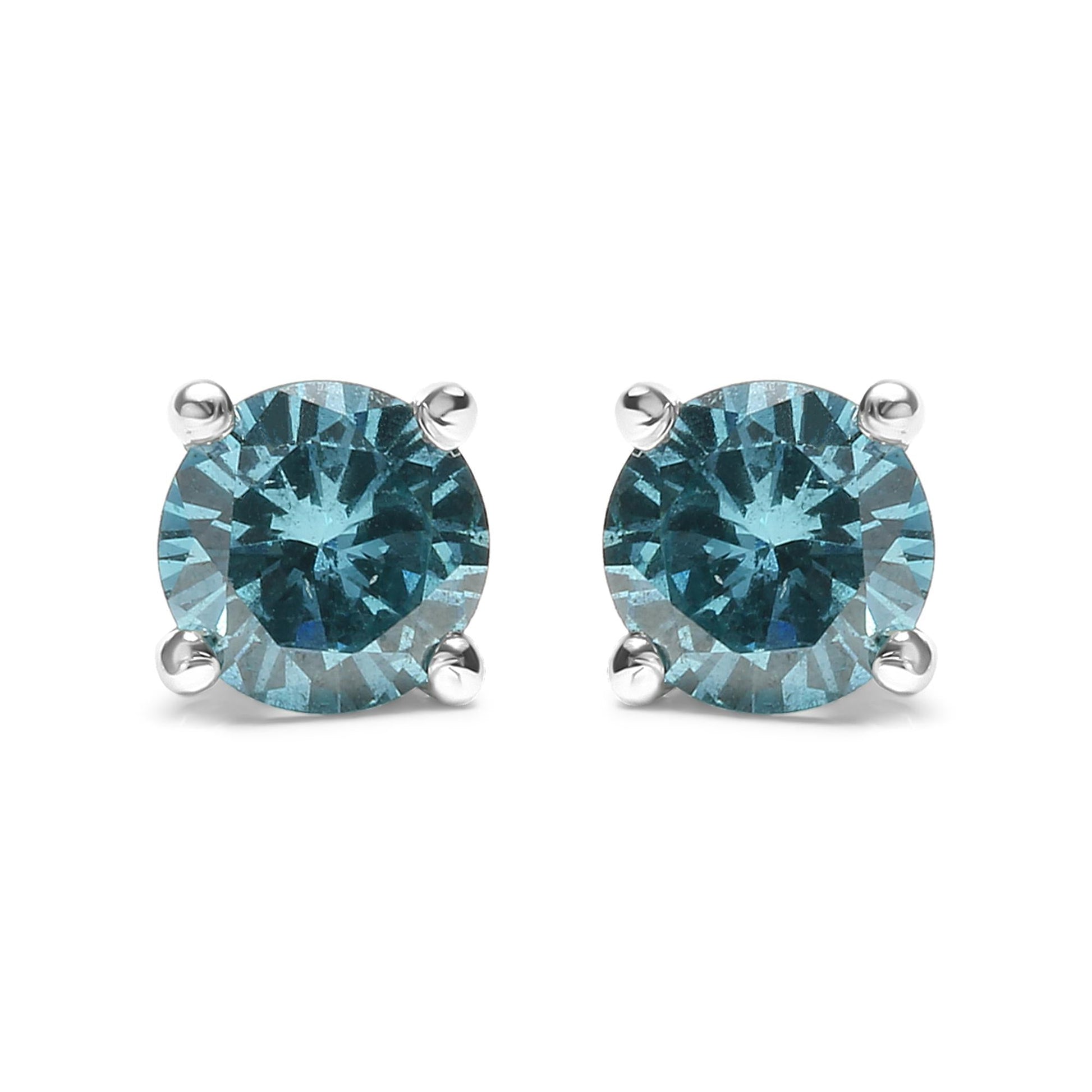14K Gold 1/2 Cttw Aqua Blue Diamond Screw-Back 4-Prong Classic Stud Earrings (Color Treated, I2-I3)
