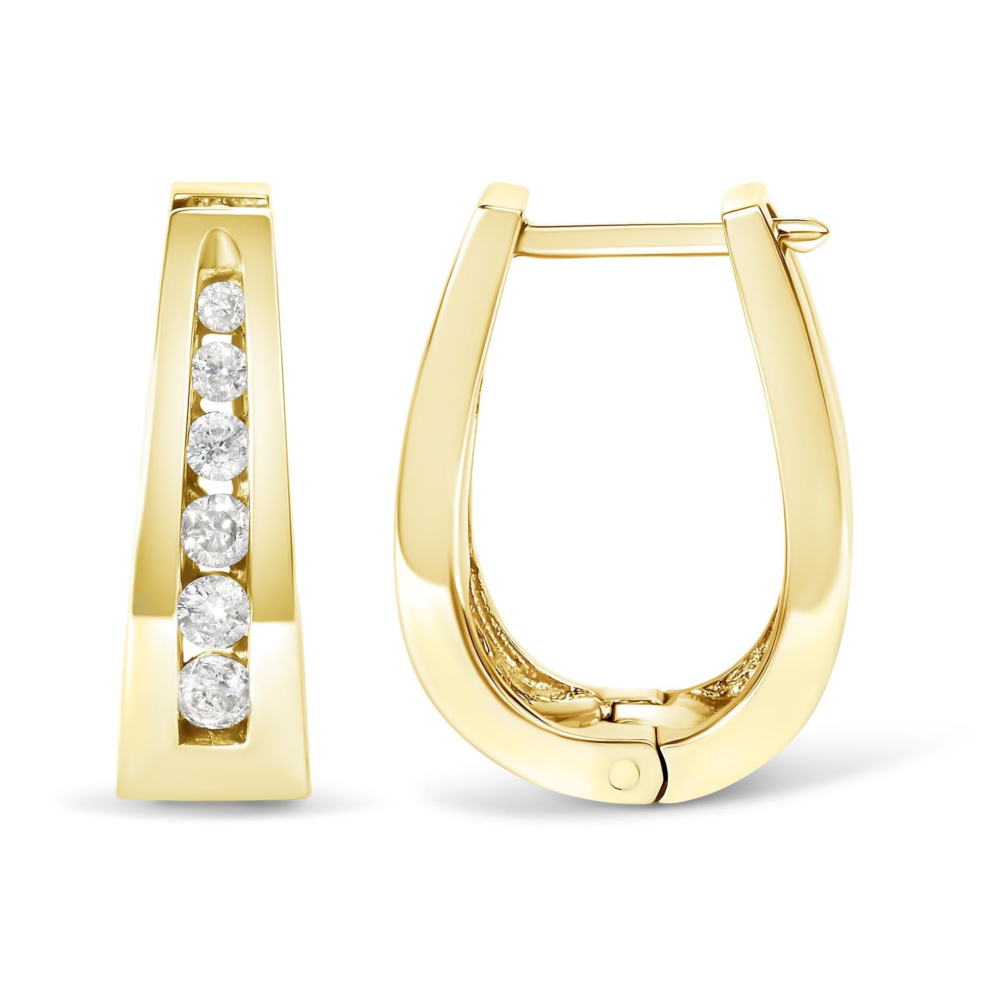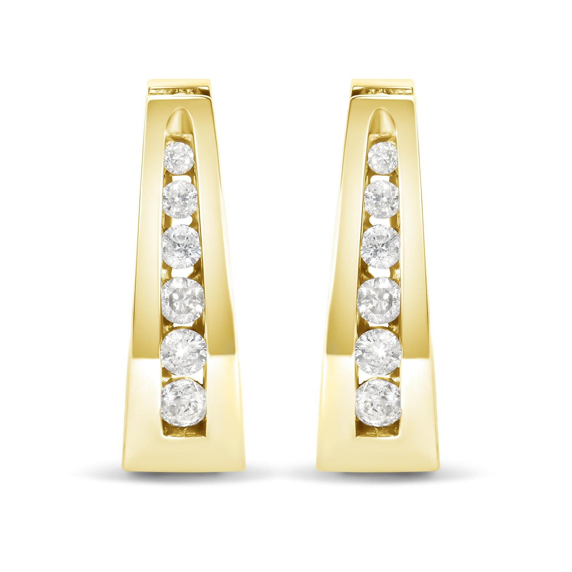 14K Gold 1/4 Cttw Channel-Set Brilliant Round-Cut Diamond Hoop Earrings (H-I Color, I1-I2 Clarity)