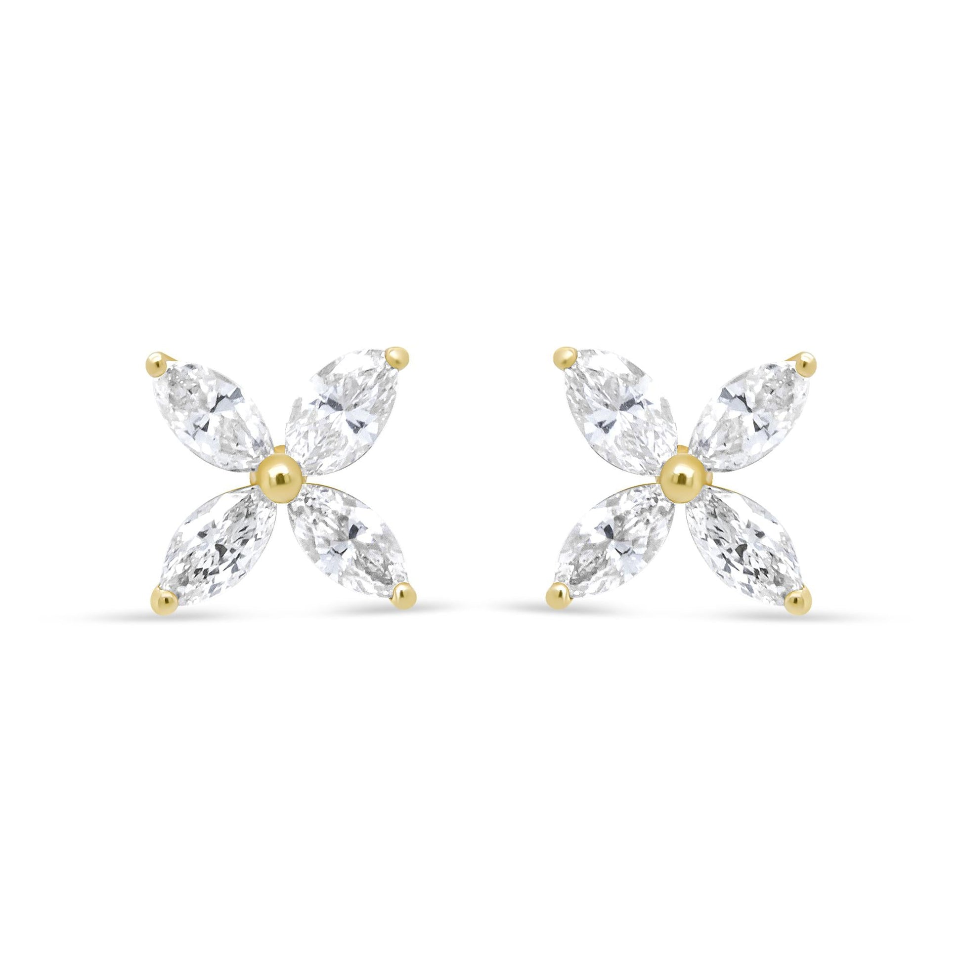 14K Gold Marquise Diamond 8 Stone Floral Leaf Stud Earrings (I-J Color, SI2-I1 Clarity)