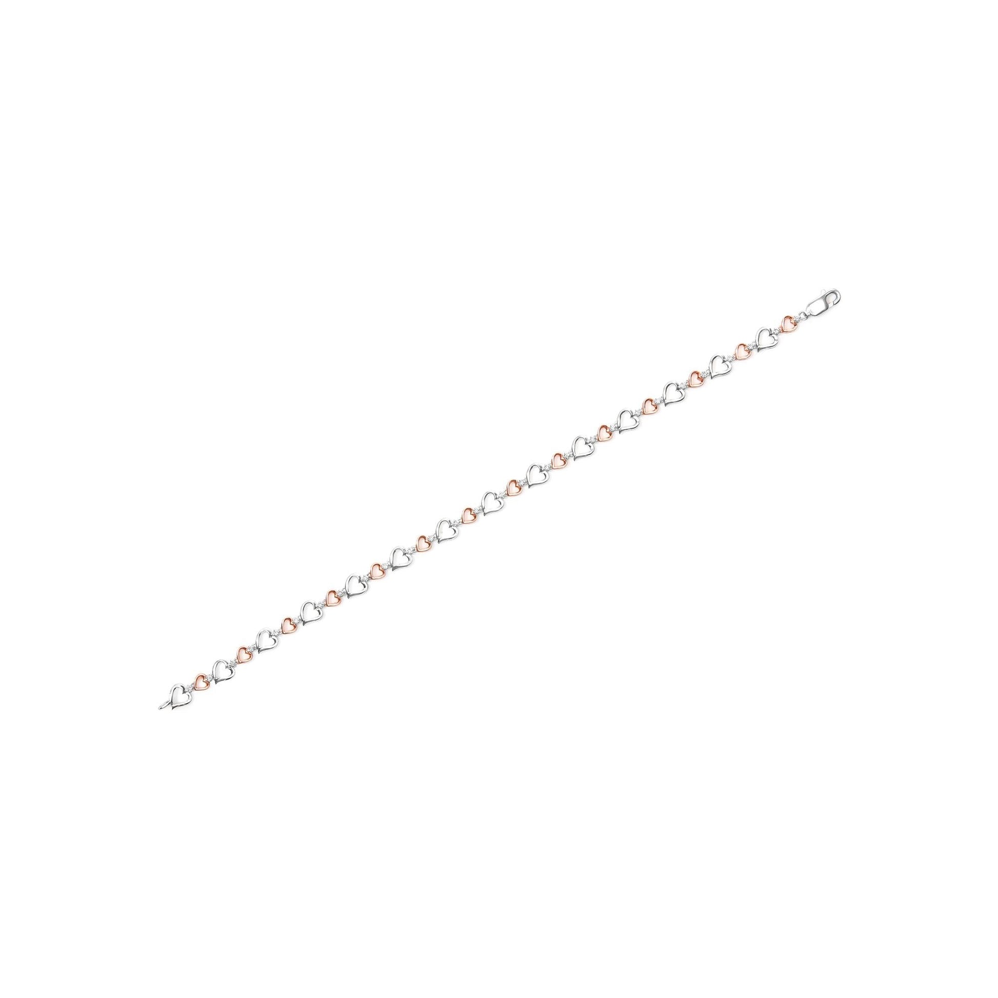 14K Rose Gold Plated .925 Sterling Silver 1/4 Cttw Diamond Heart Link Bracelet (I-J Color, I2-I3 Clarity) - Size 7" Inches