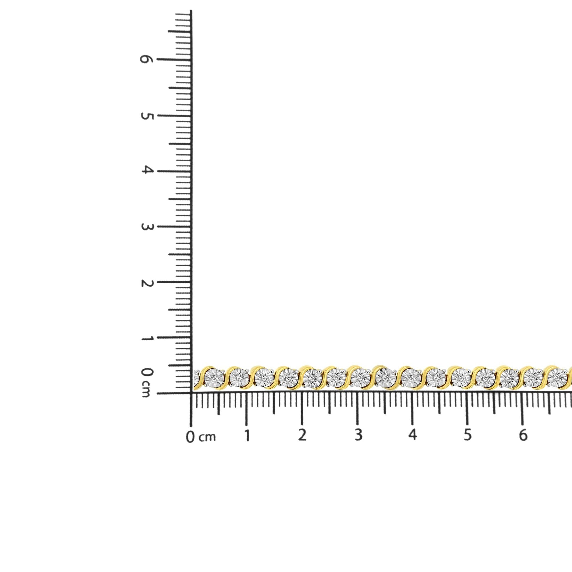 Elegant and timeless, this gorgeous 92.5% sterling silver tennis bracelet features 0.25 carat total weight of natural round brilliant cut white diamonds with 37 individual stones in all. The tennis bracelet has each diamond set into a faceted bezel style miracle plate setting sandwiched between faux bypass style waves of silver. The unique miracle-plate settings center each genuine diamond in a mirror-finish, high-polish frame, giving the illusion of a much larger stone. The 7” long bracelet culminates in a secure box with tongue and safety clasp. The bracelet comes in your choice of rhodium or 14 karat yellow or rose gold plated sterling silver. Whether worn for daytime glamour or evening sparkle, this classic tennis bracelet is gorgeously versatile. It’s a timeless treasure she’ll enjoy wearing every day.