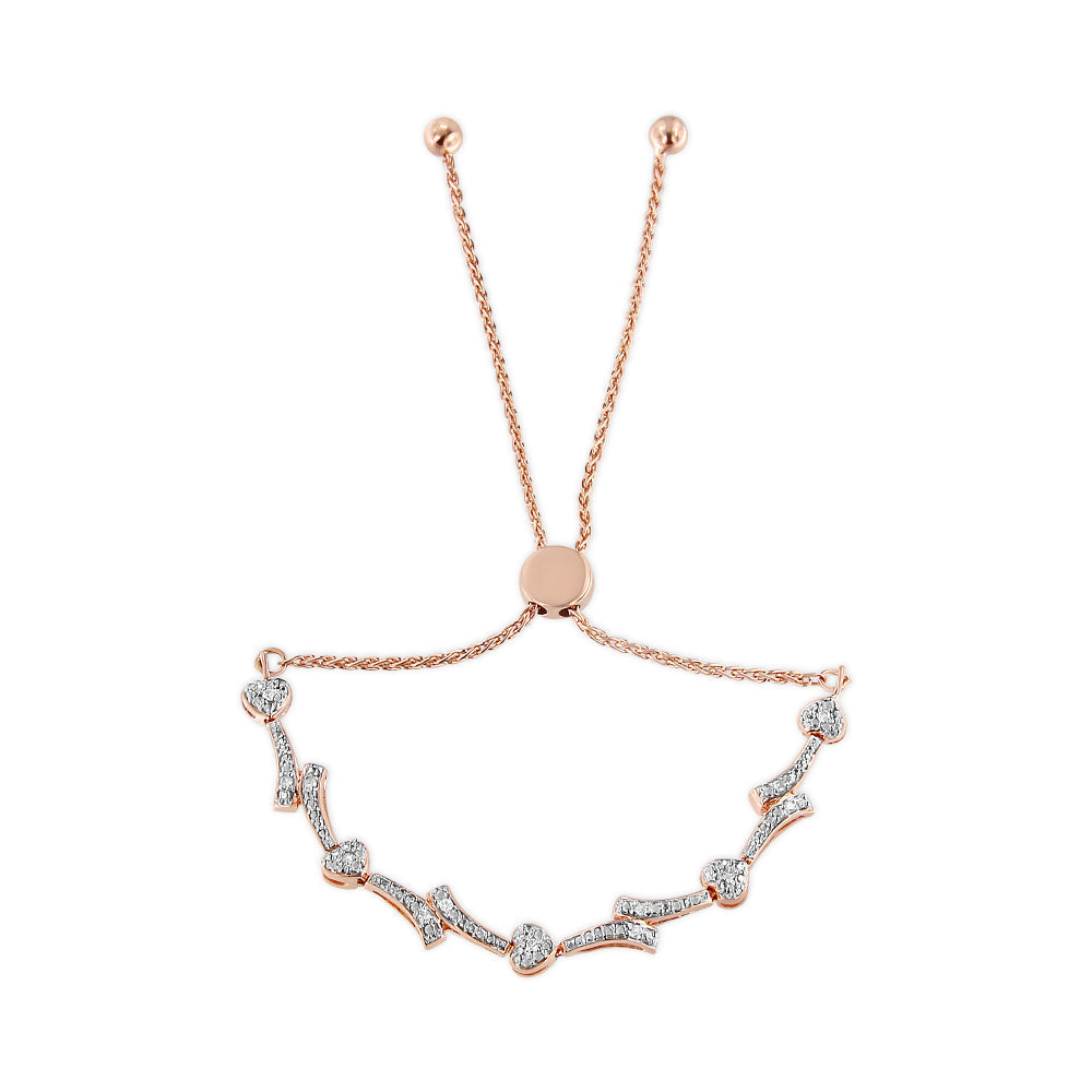 When it comes to jewelry, the rose gold trend is definitely not going anywhere anytime soon, and this dainty piece is a great pick to add to your closet. The 14K rose gold-plated Sterling Silver bracelet features 13 natural round-cut diamonds that have a 1/10 cttw in heart shape links. Set in a pavé setting, the stones alternate with alluring wave-like patterned link. It’s secured with an adjustable bolo clasp that can be adjusted for a custom fit between 6 to 9 inches making this a piece for almost all wrists.
