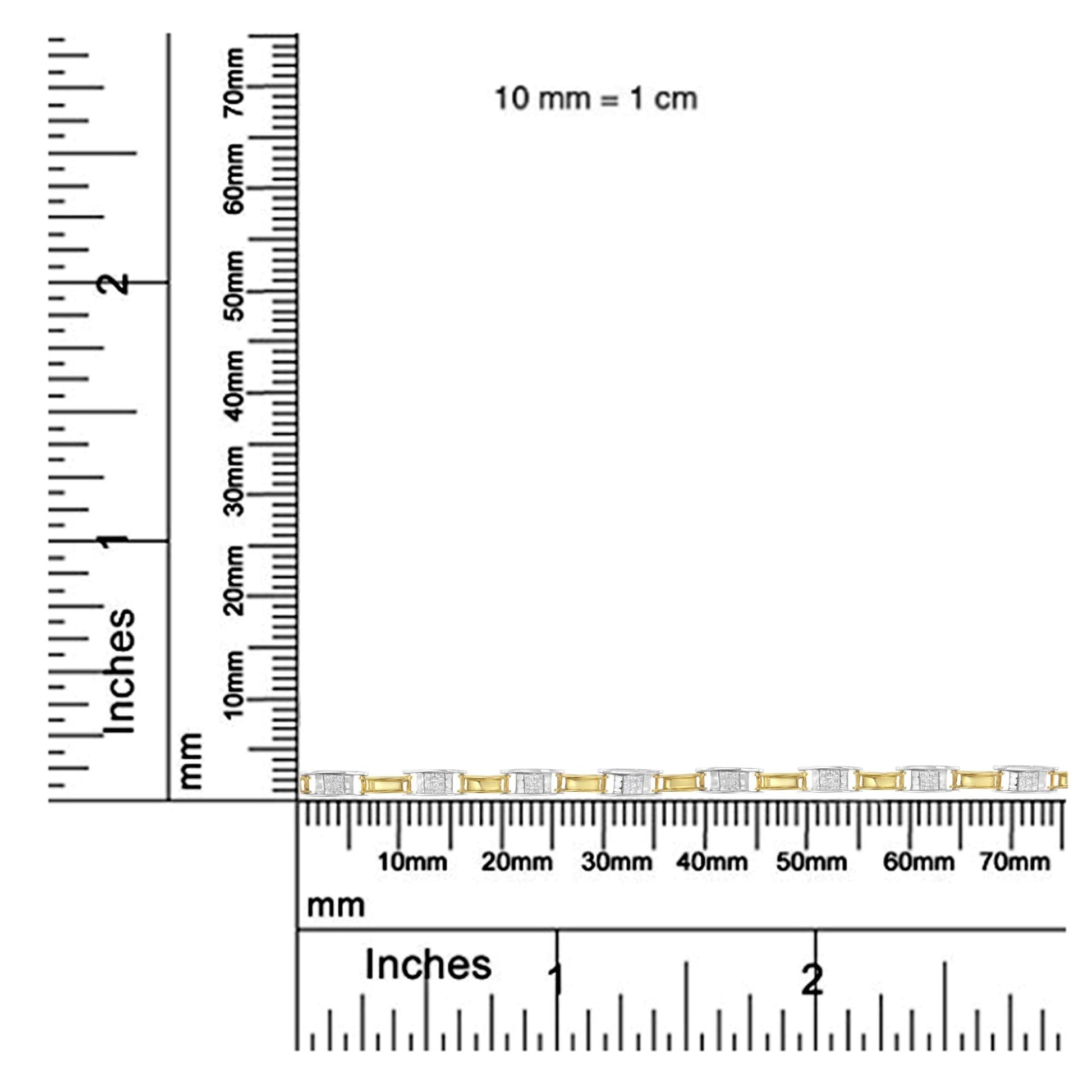 Indulge in the luxurious beauty of this exquisite 14K two-tone gold princess-cut diamond link bracelet. With 99 natural diamonds totaling 1.00 carat, this piece exudes elegance and sophistication. The channel setting ensures that each diamond is secure and maximizes their shine, while the H-I color and SI1-SI2 clarity add an extra touch of sparkle. The bracelet is designed with a princess diamond link pattern that is as intricate as it is stunning, perfect for the modern woman who appreciates intricate design and exceptional craftsmanship. At 7 inches in length, it's the perfect size to grace any wrist. The box clasp ensures that the bracelet stays securely in place, allowing you to wear it with confidence. Whether you're dressing up for a formal occasion or adding a touch of glamour to your everyday look, this bracelet is sure to turn heads. With its exquisite details and superior quality, it's a piece that you'll treasure for years to come.