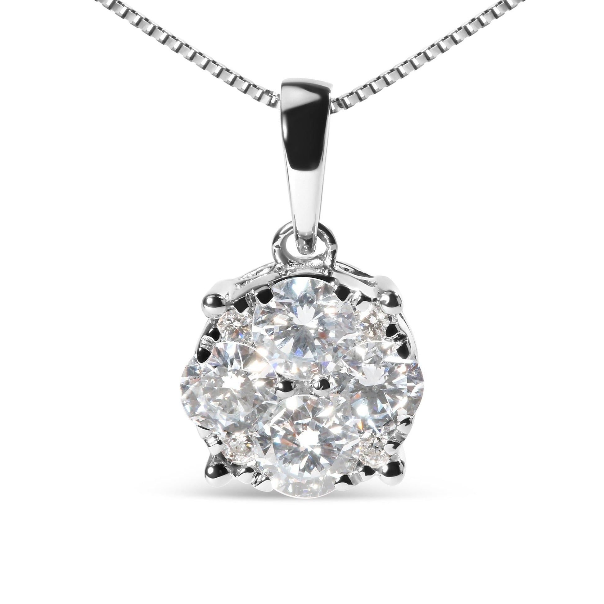 14k White 1.00 Cttw Lab Grown Diamond Cluster Pendant 18" Necklace (G-H Color, VS1-VS2 Clarity)