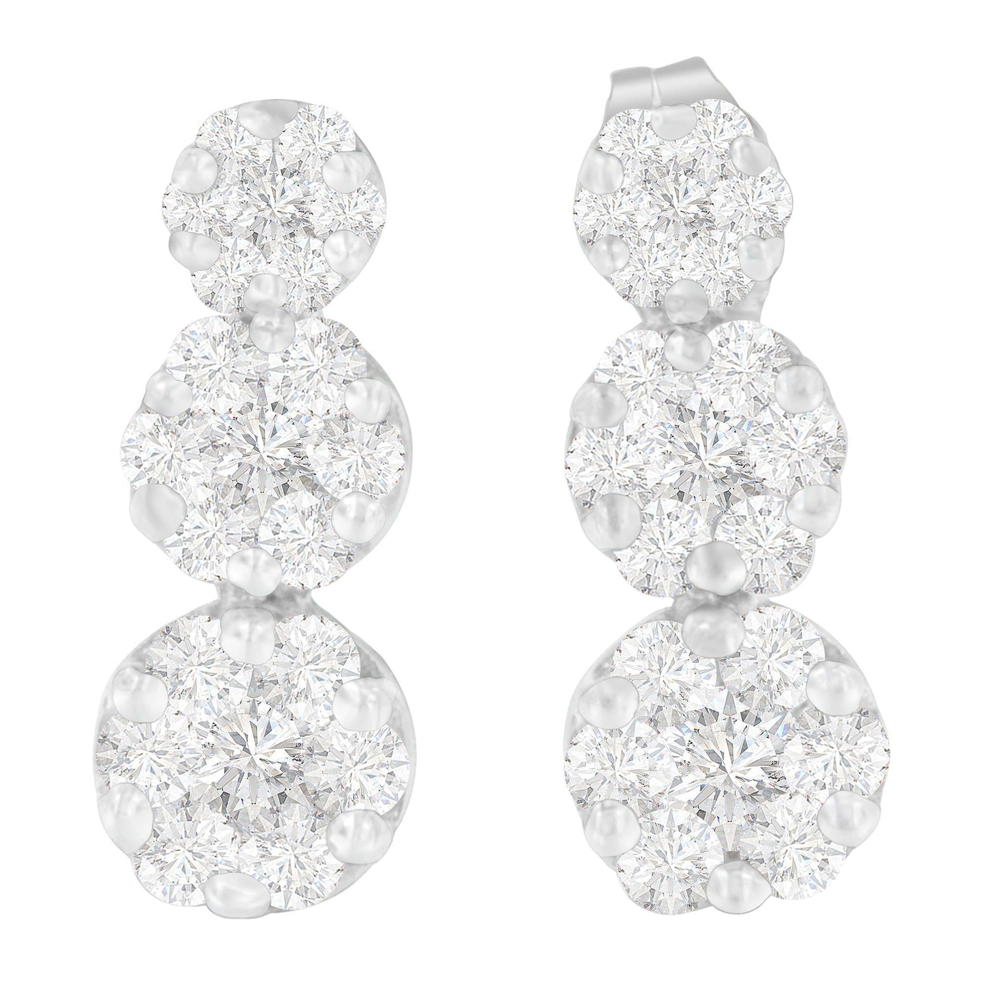 14K White Gold 1 1/2 cttw Round Cut Diamond Earrings (H-I, SI2-I1)