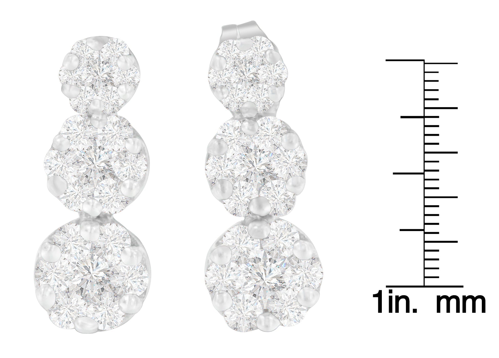 She will adore her look when she wears these diamond dangle earrings. Composed of lustrous 14 karats white gold, it features three round shaped accents in different sizes. Each of the earrings is adorned with sparkling round cut diamonds that are arranged in a prong setting. The classic design of these earrings makes a must-have accessory, which every girl should have in her wardrobe.