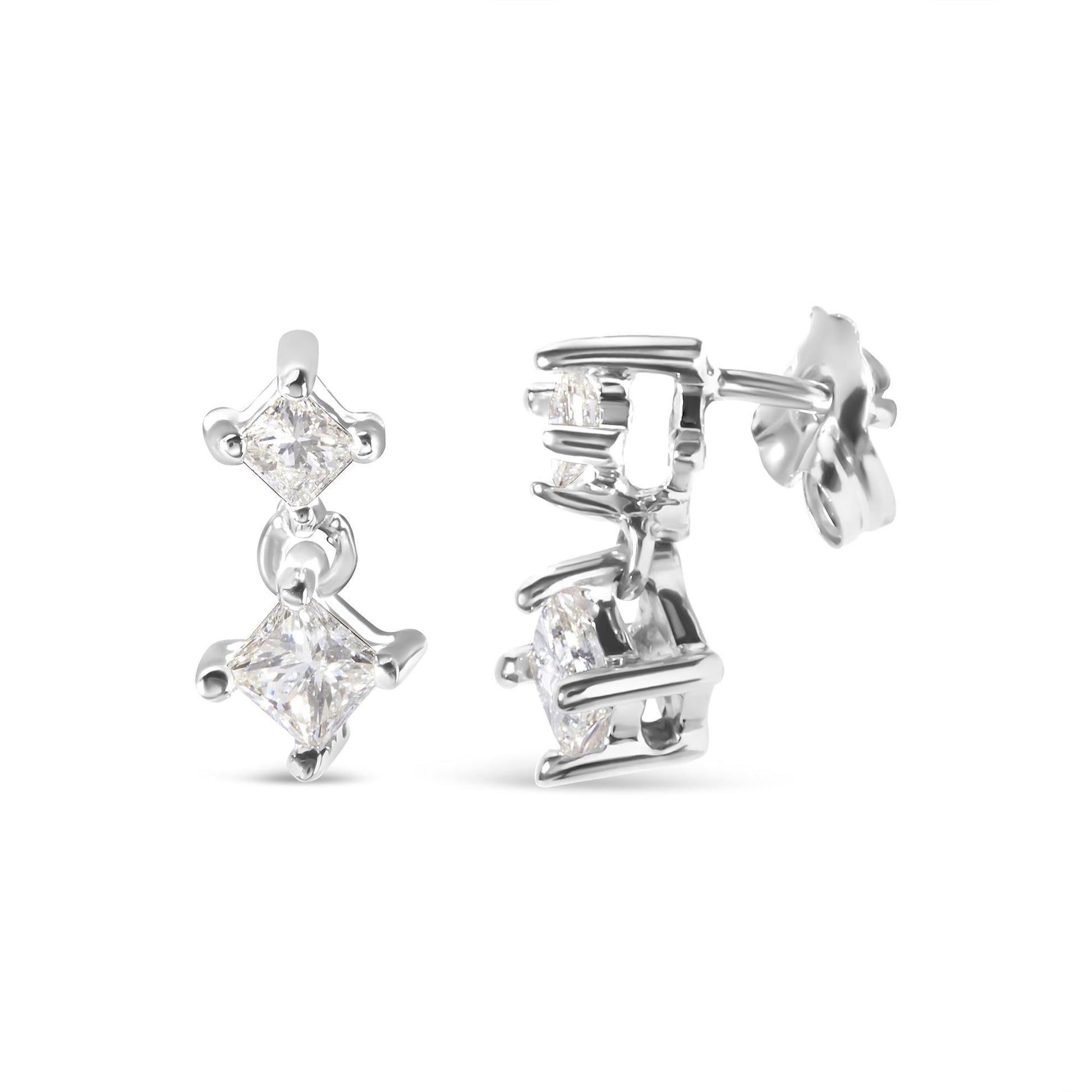 14K White Gold 1/2 cttw Princess Cut Diamond Earrings (H-I Color, SI1-SI2 Clarity)