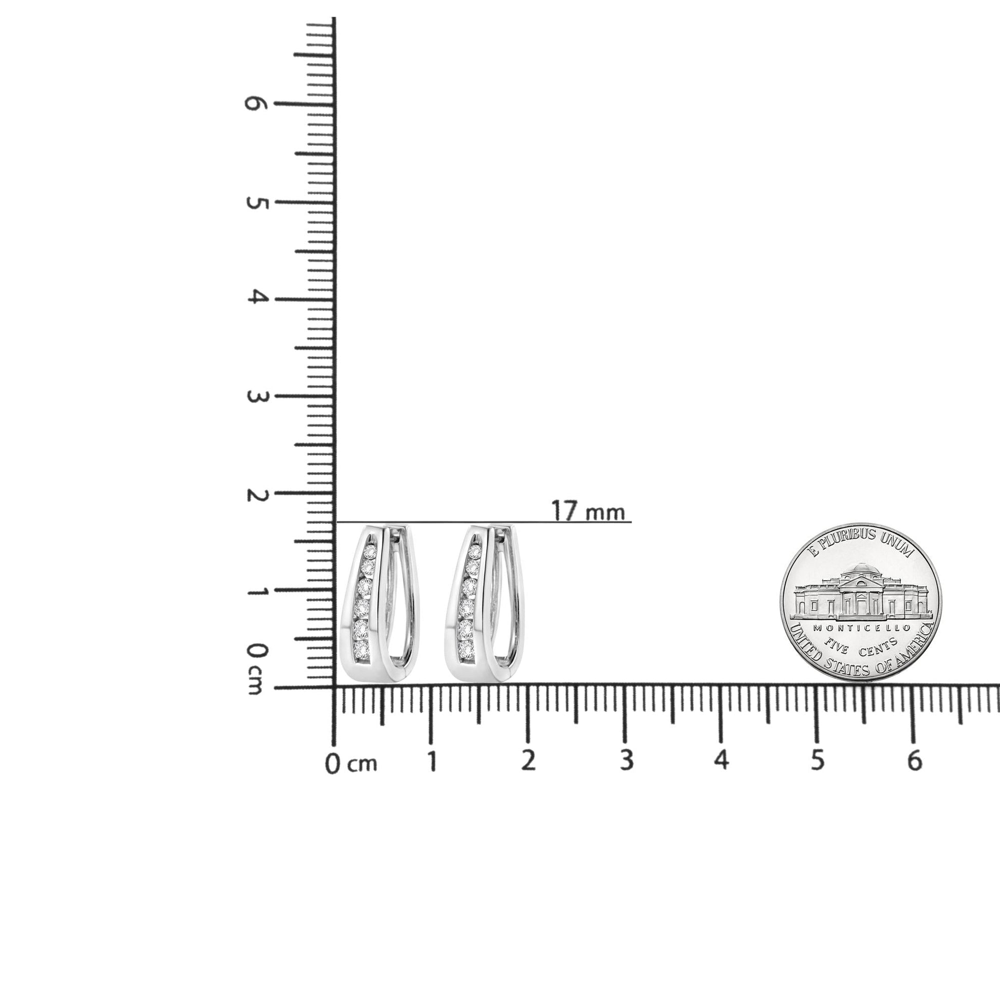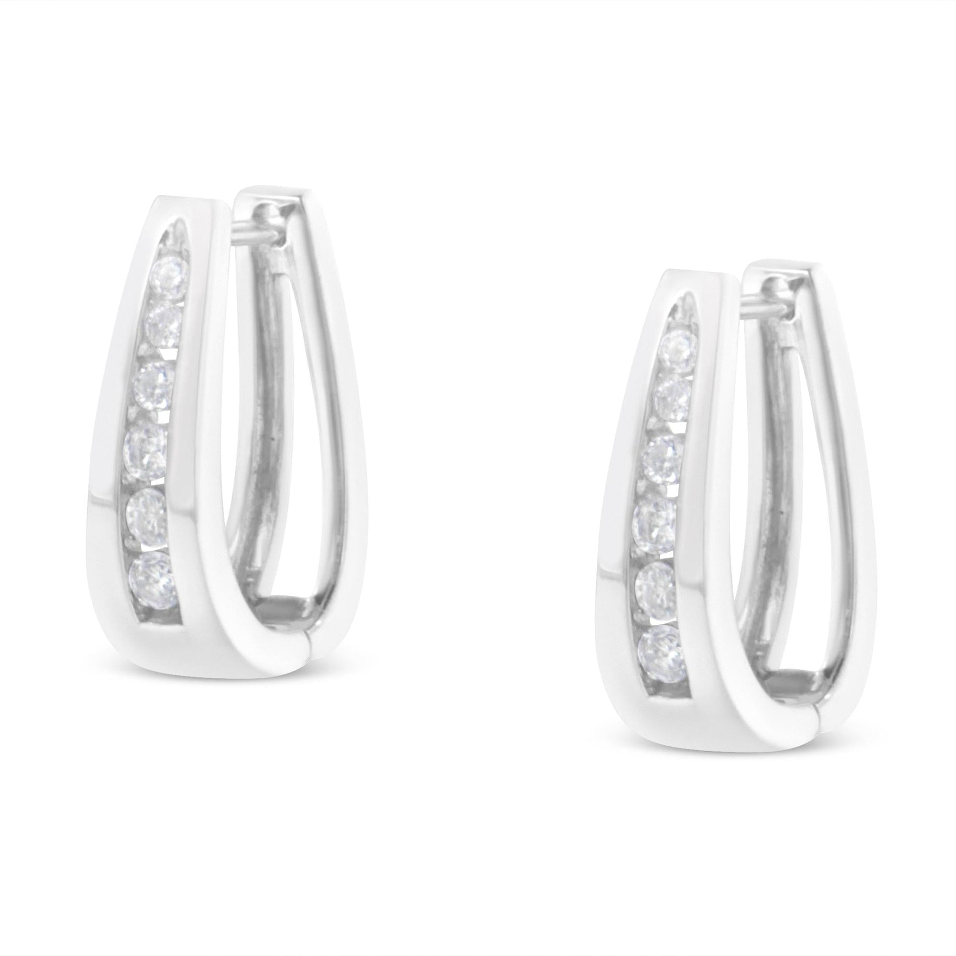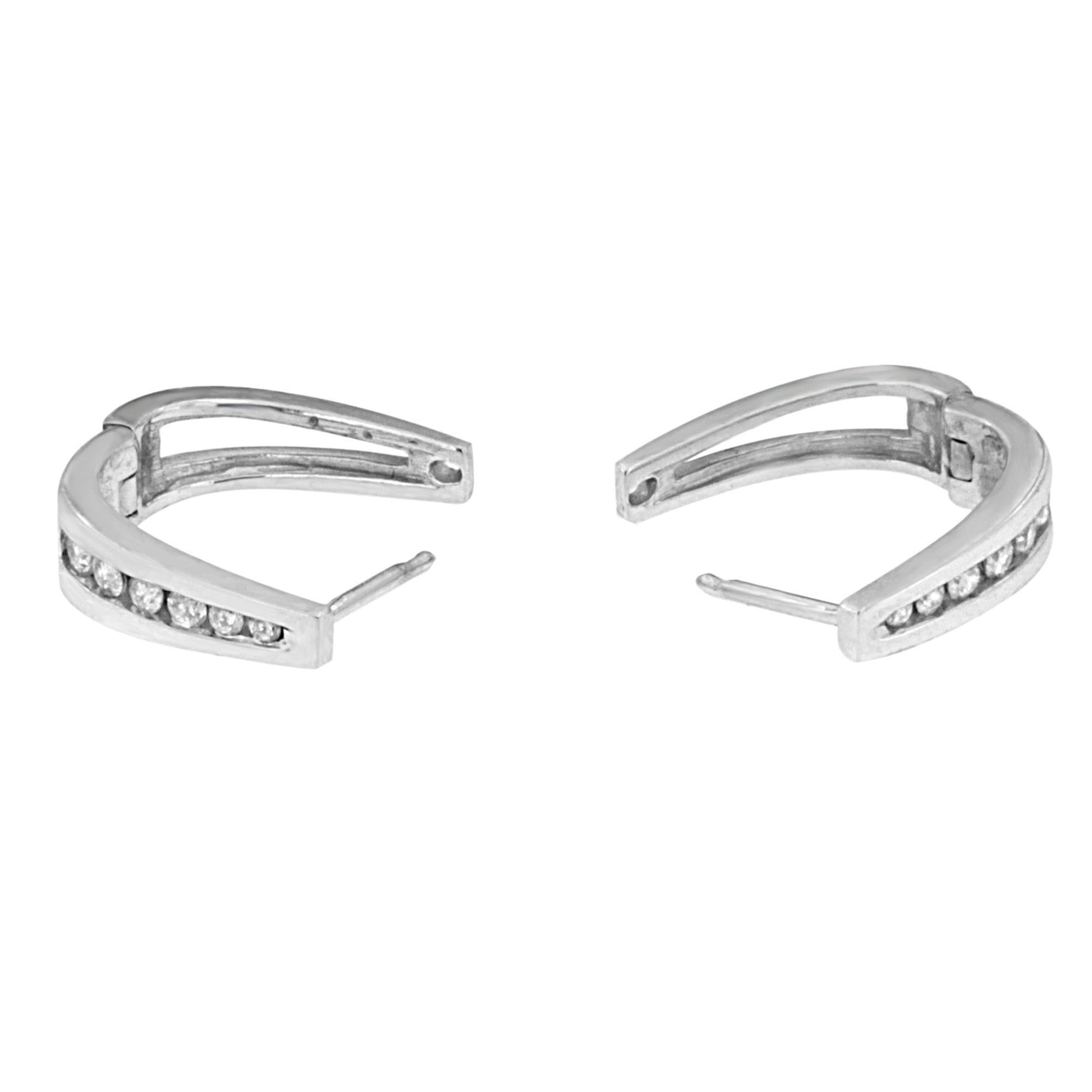 14k White Gold Channel-Set Brilliant Round-Cut Diamond Hoop Earrings (I-J Color, I2-I3 Clarity)