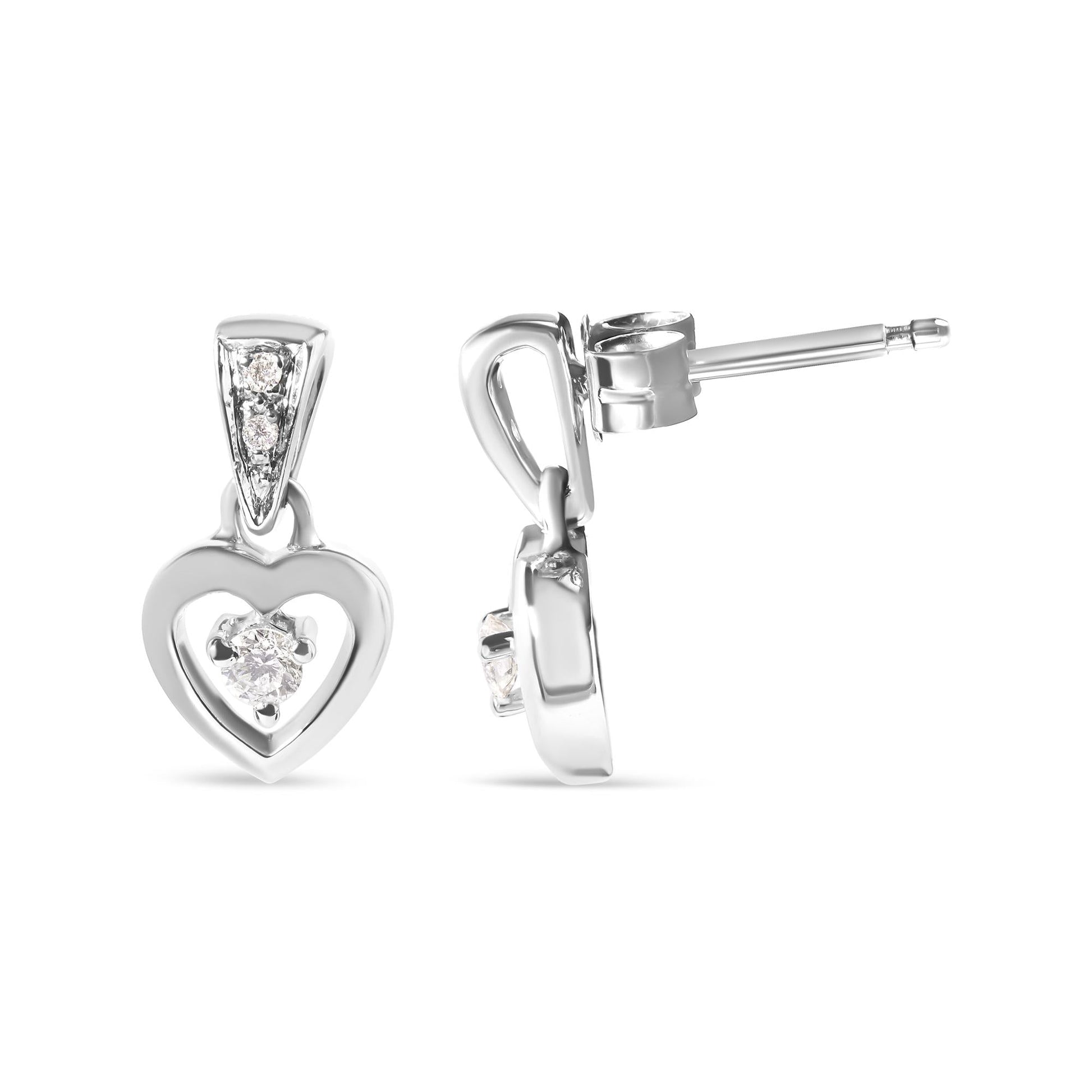 14K White Gold 1/6 Cttw Diamond Dangle Heart Stud Earrings (H-I, SI2-I1)
