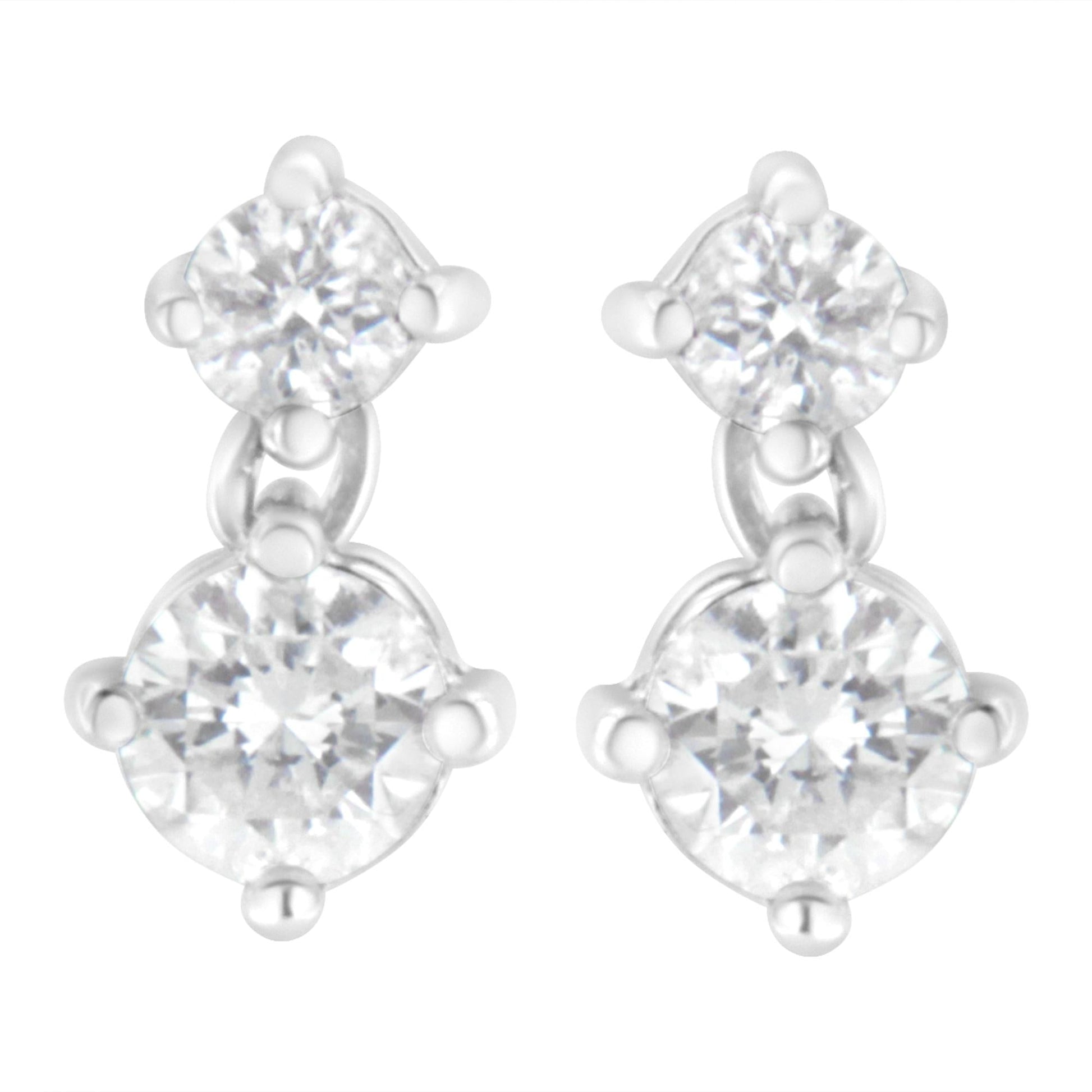 14K White Gold 1 cttw Double Diamond Stud Earrings (H-I Clarity, SI2-I1 Color)