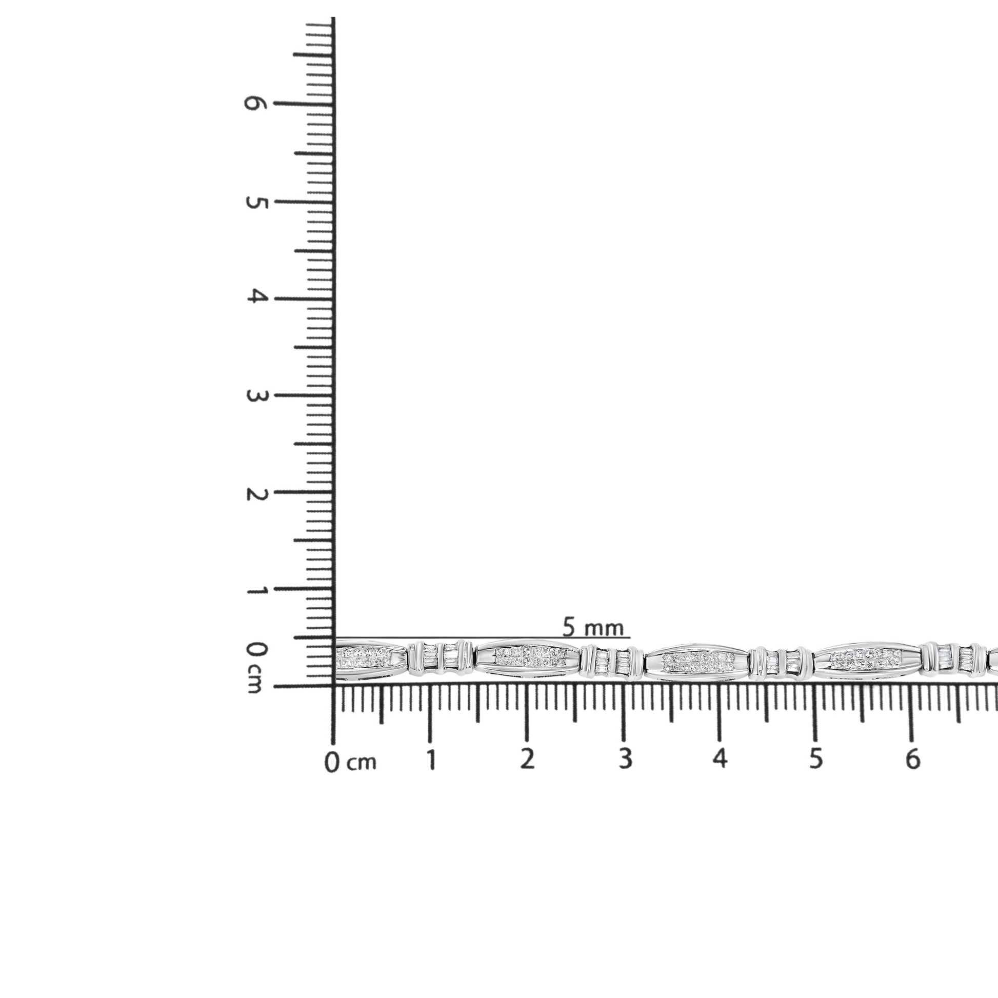 14K White Gold 2.0 Cttw Channel-Set Alternating Baguette and Princess-Cut Diamond Link Bracelet (H-I Color, SI2-I1 Clarity) - Size 7