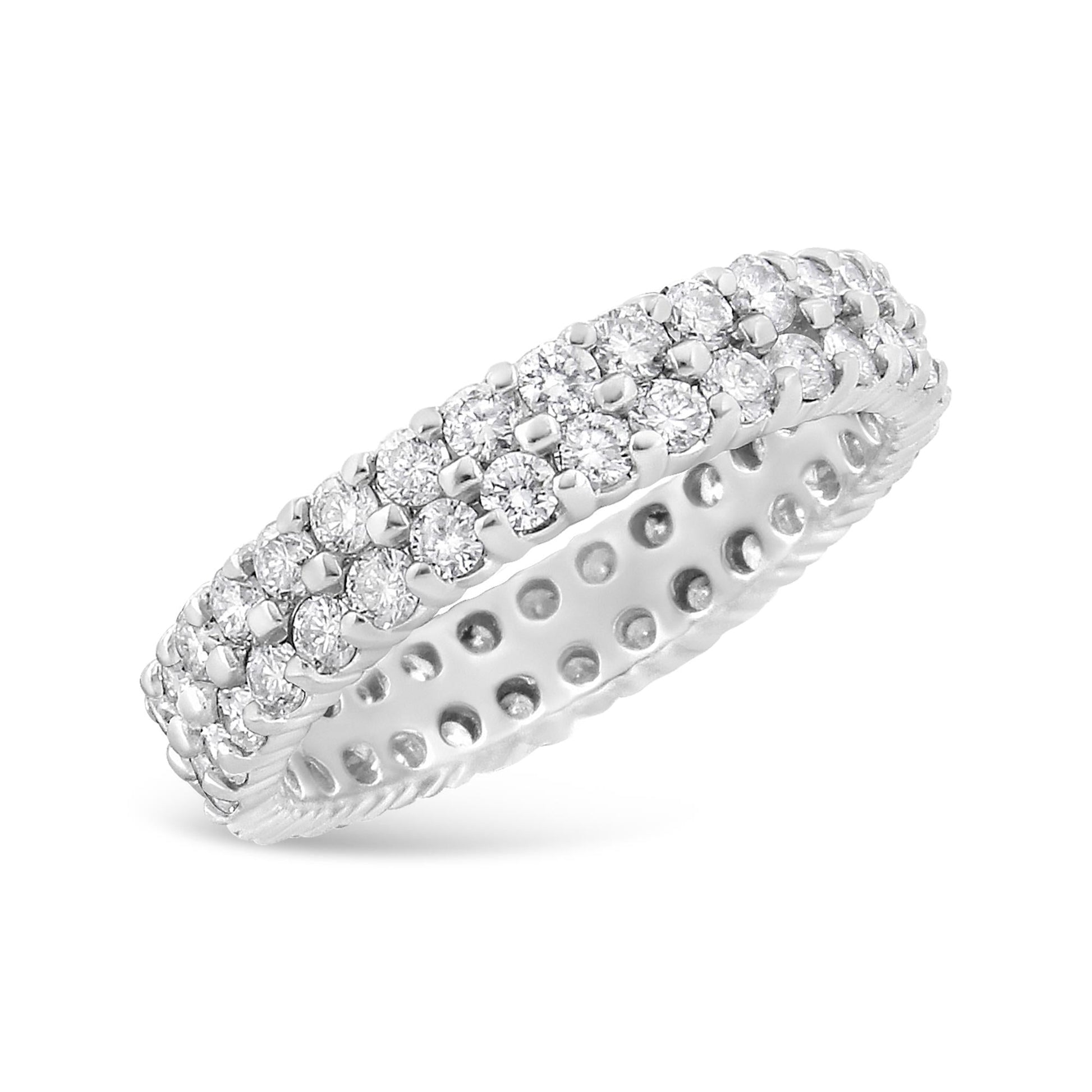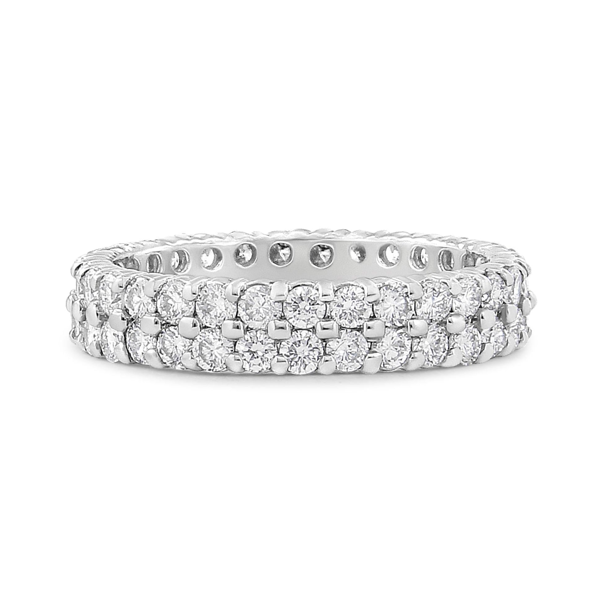 14K White Gold 2.0 Cttw Round-Cut Diamond Double Row Eternity Band Ring (H-I Color, SI1-SI2 Clarity)