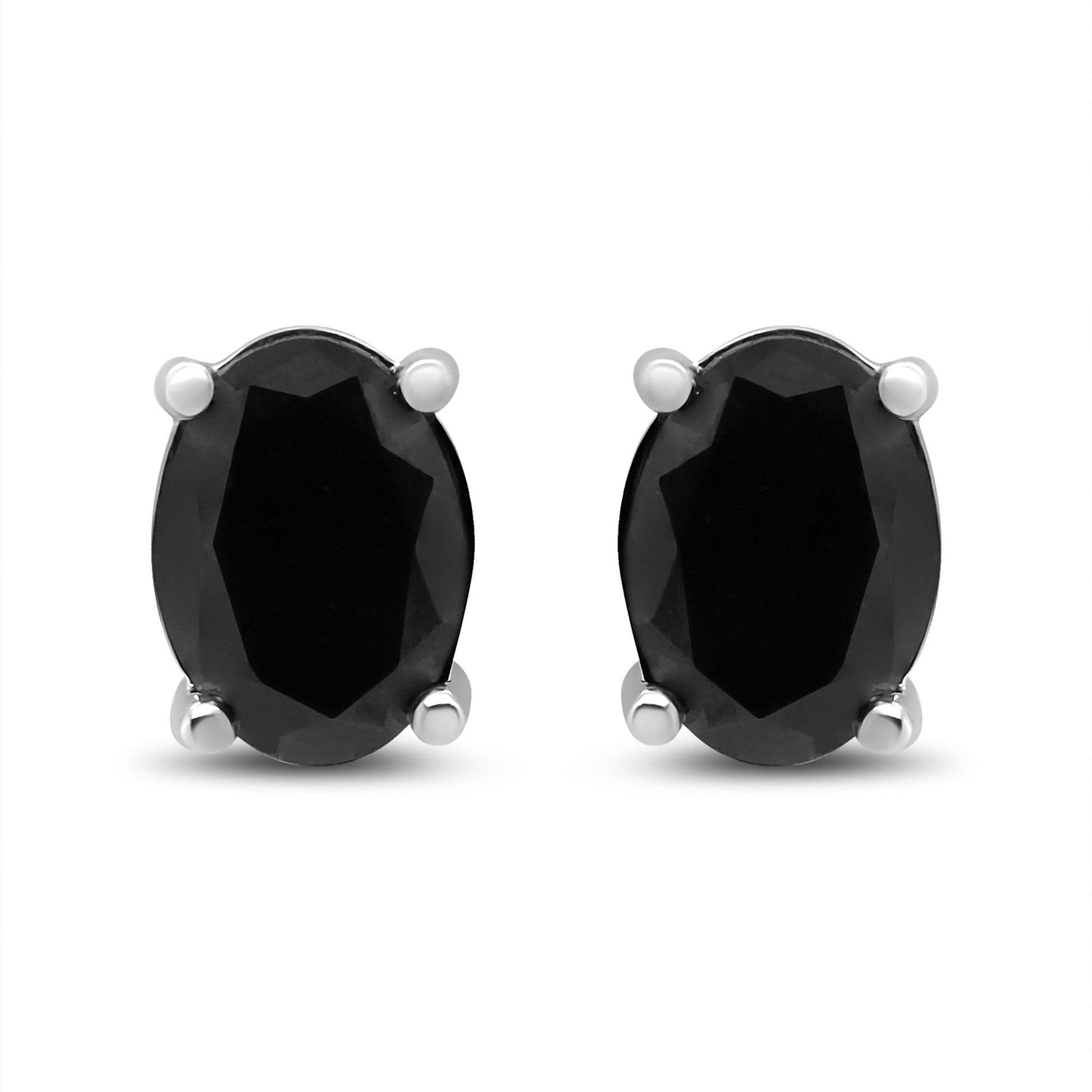 Elegant and timeless, these gorgeous 14K white gold solitaire stud earrings feature bold and beautiful heat treated, color enhanced black diamonds in an oval shape. The earrings feature screwback closures. The notched posts and friction backs keep these pierced earrings safe and secure on your ears for comfortable, worry-free wear all day long. This authentic design is crafted of real 14 karat gold, a precious metal that will keep a tarnish-free shine for years to come. These reimagined classic stud earrings make a great gift for any special occasion! Diamonds are thought to give the wearer clarity and illuminate solutions to life’s problems. These stud style earrings are subtle enough for casual affairs but sparkle in formal settings as well. Coordinate these earrings with your favorite diamond necklace or other diamond jewelry to create a complete elegant ensemble. Earring pair comes with 2 oval cut diamonds; each stone weighs approx 1 carat for a 2 carat total weight.