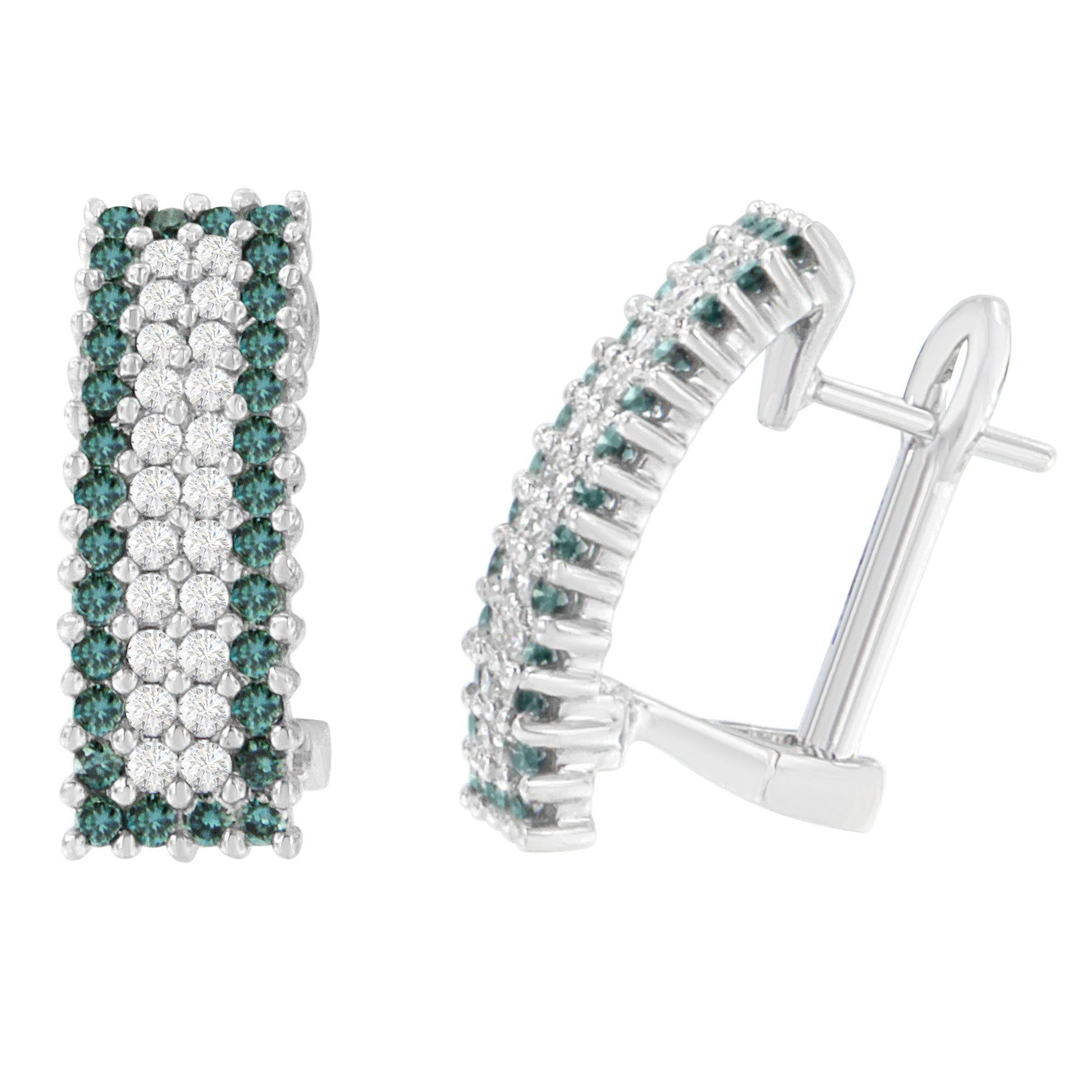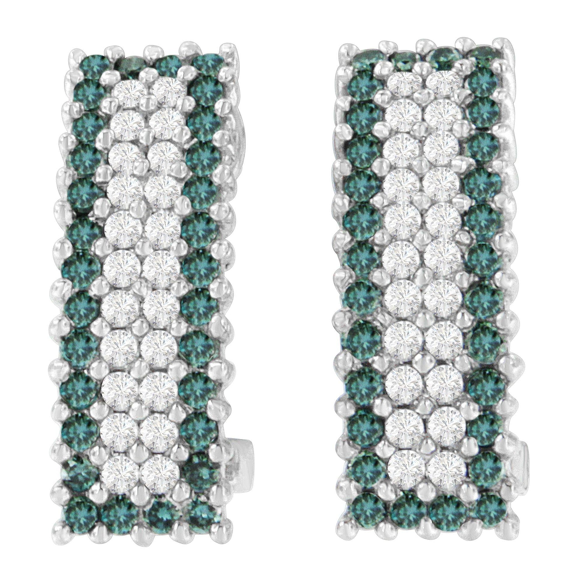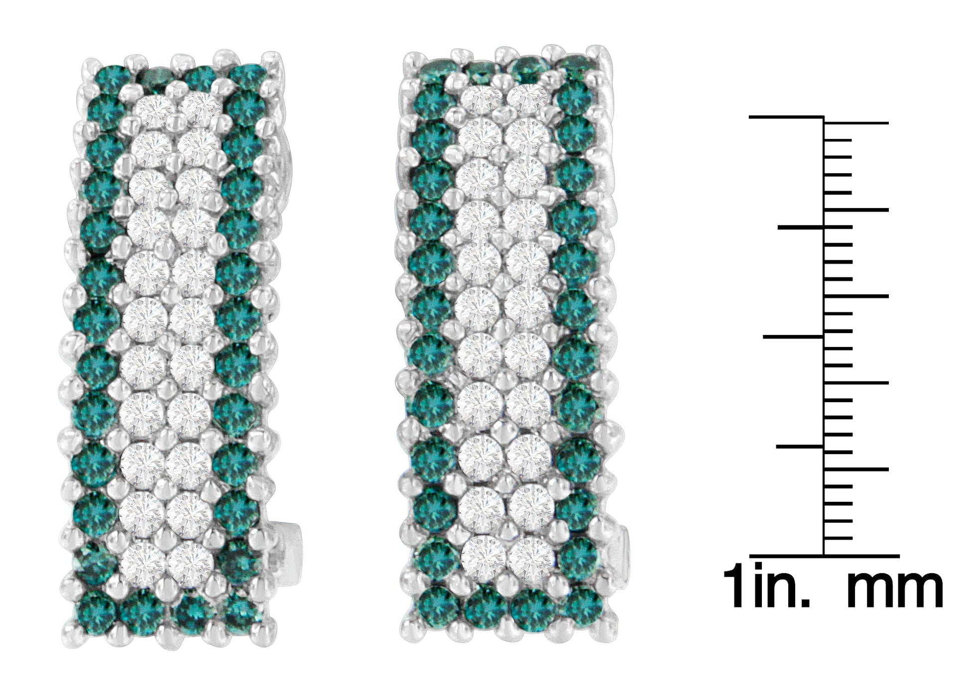14K White Gold 2 cttw White and Treated Blue Diamond Earrings (H-I, SI1-SI2)