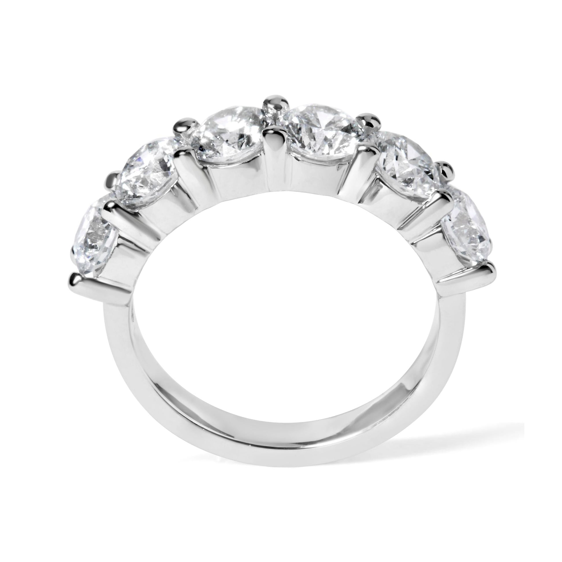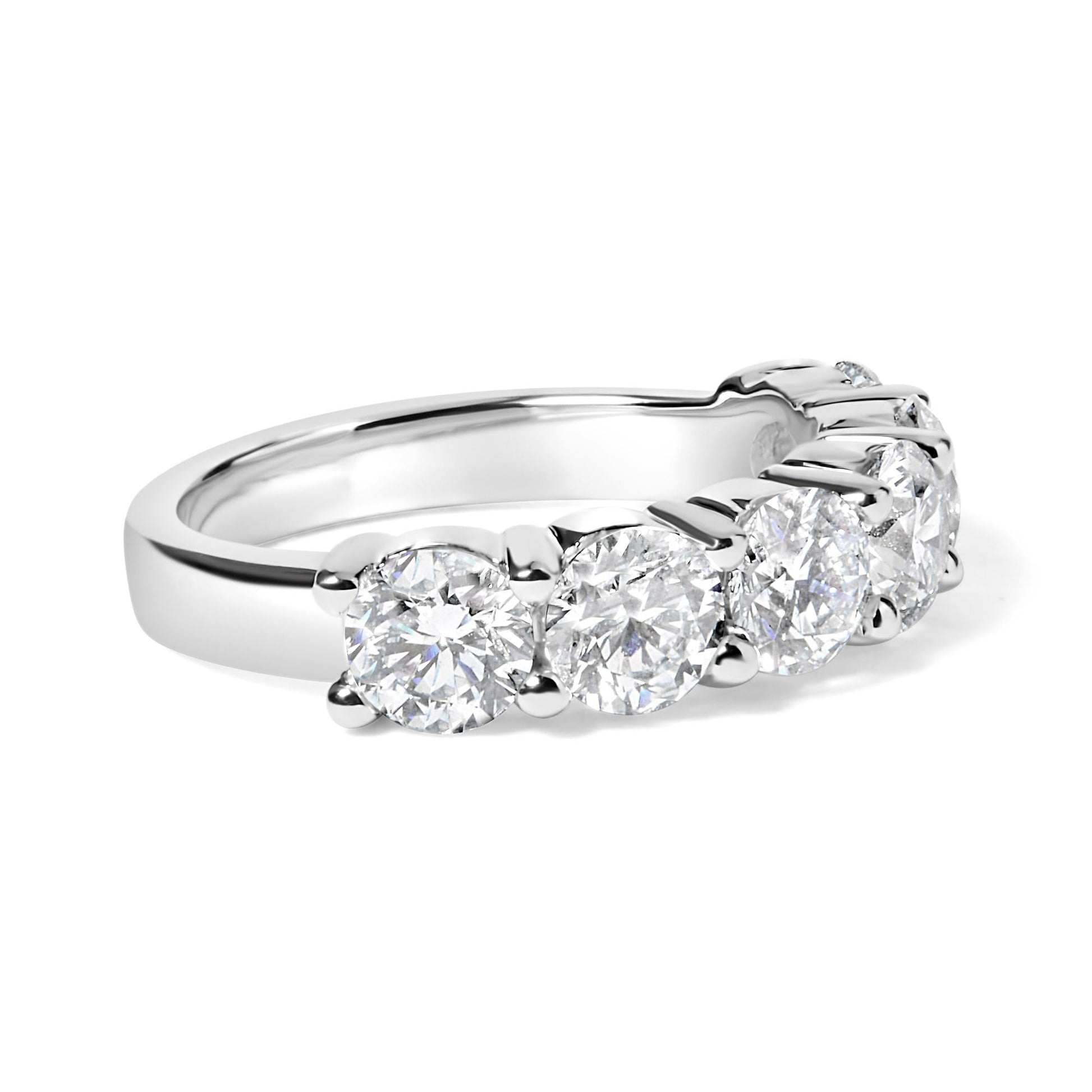 Celebrate love's eternal dance with this exquisite ring, a fusion of tradition and innovation. Six dazzling lab-grown diamonds, each a brilliant round cut, shine with G-H color and VS2-SI1 clarity, nestled in a shared prong setting. These 3.0 carats of ethically sourced diamonds are a radiant expression of elegance and commitment. The 3mm band of 14k white gold complements the diamonds, creating a timeless design that whispers of romance. Whether symbolizing love's journey or a precious personal milestone, this ring becomes a cherished part of your story. Its allure lies in its classic beauty, enhanced by the modern appeal of lab-grown diamonds, a beacon of sustainability and grace. Let this ring be the emblem of your love, a masterpiece that transcends time, waiting to adorn the hand that holds your heart. A symbol of love that's both eco-friendly and luxurious, it promises to be a conversation starter for years to come.