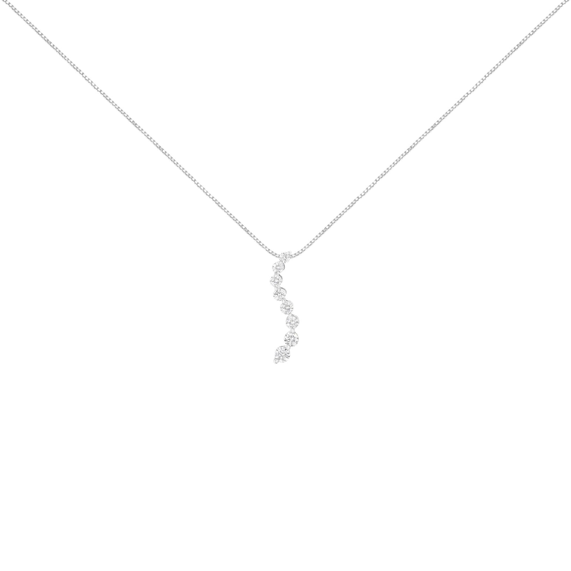 14K White Gold 3.0 Cttw Round-Brilliant & Baguette Cut Diamond S Shaped Graduated 18" Pendant Necklace (I-J Color, I2-I3 Clarity)